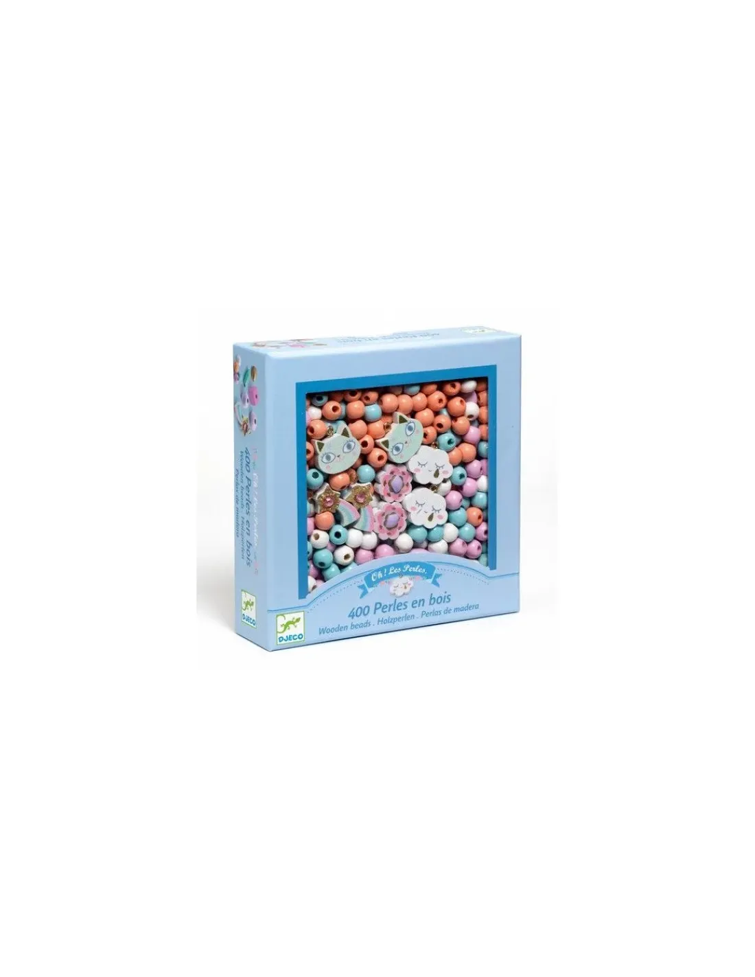 Ce coffret contient 400 perles en bois et 1 couleur de fil.