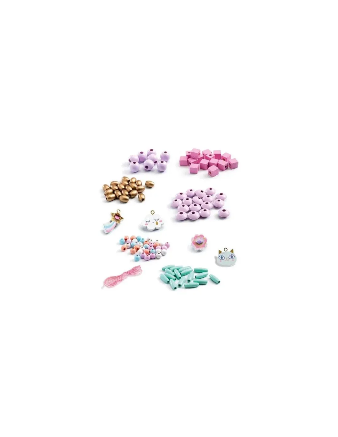 Découvrez les perles en bois arc en ciel de Djeco, 400 perles en bois pour réaliser des bijoux pour les enfants de 4 à 8 ans. Nuages, chats, fleurs et arc-en ciel à enfiler pour créer ses propres bijoux.