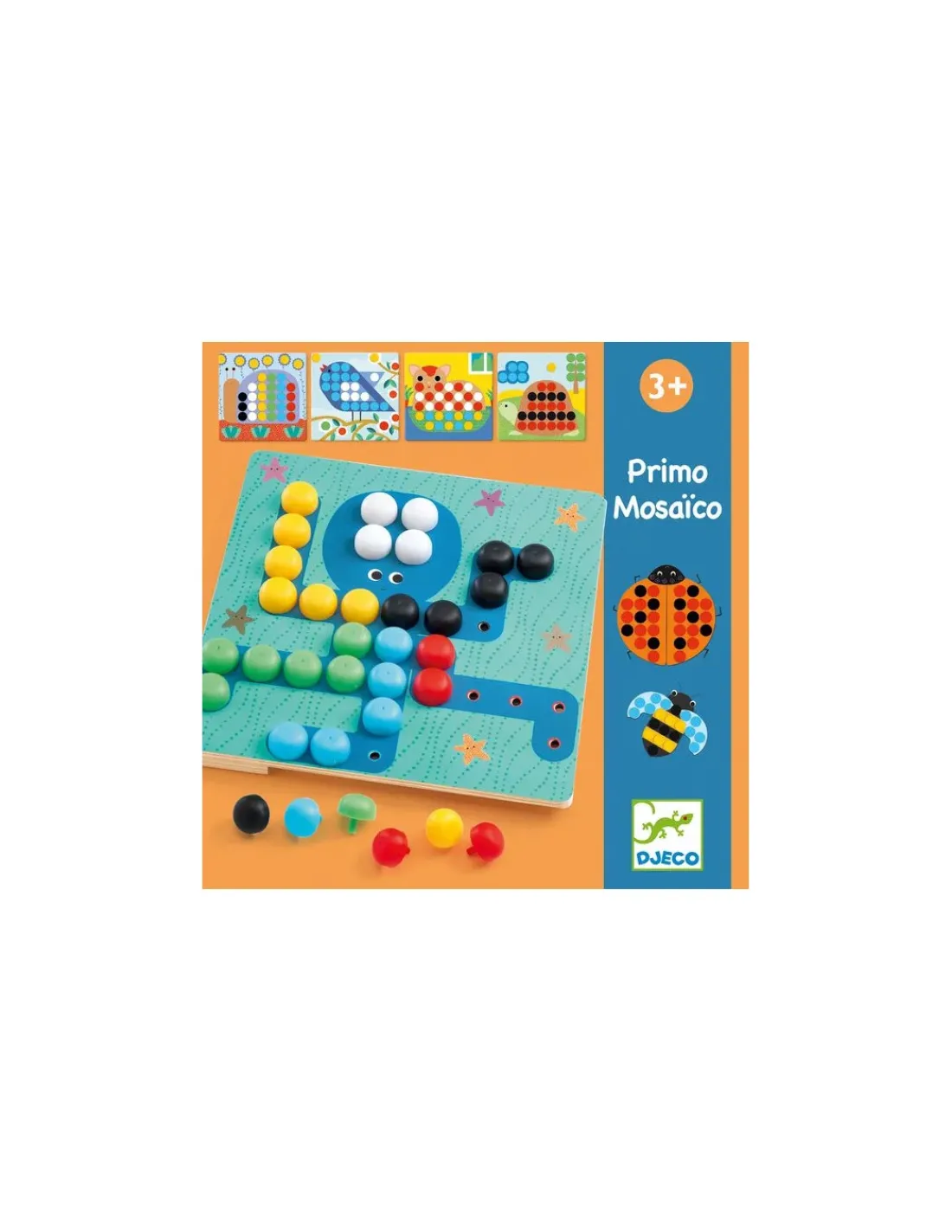 Découvrez le jeu Primo Mosaïco de Djeco, un jeu de mosaïque éducatif pour les enfants dès 3 ans. Votre enfant va devoir placer les picots sur les images, afin de créer les animaux en mosaïque.