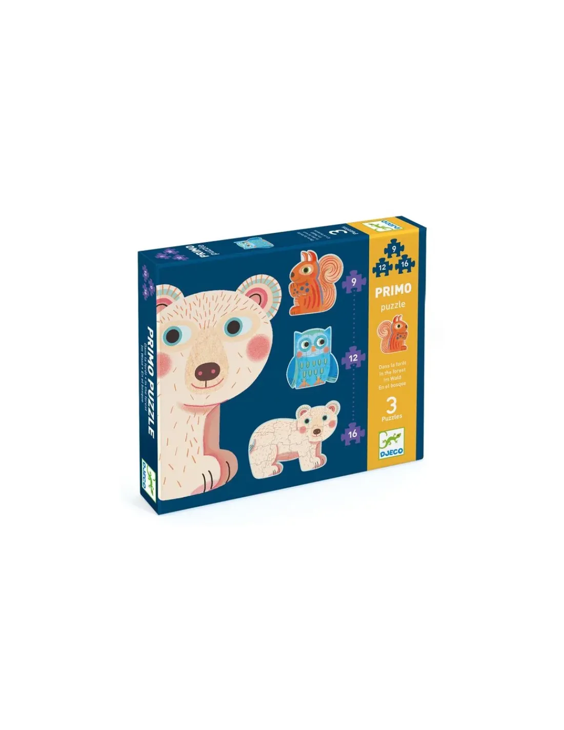 Découvrez le primo puzzle Dans la forêt de Djeco, un coffret qui comprend 3 puzzles évolutifs et silhouettés de difficulté croissante pour les enfants à partir de 3 ans.