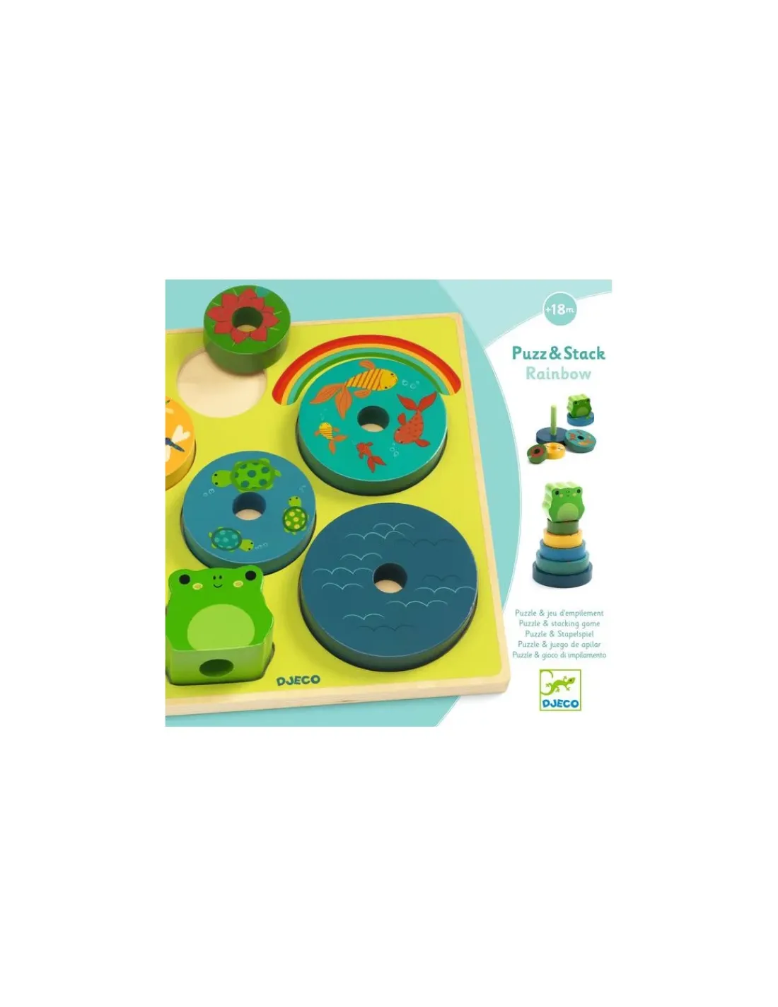 Découvrez le coffret Puzz & Stack Rainbow de Djeco, un jouet d’éveil en bois coloré pour les enfants à partir de 18 mois. Un puzzle à encastrer en bois qui favorise le développement de la motricité fine et de l’imaginaire.