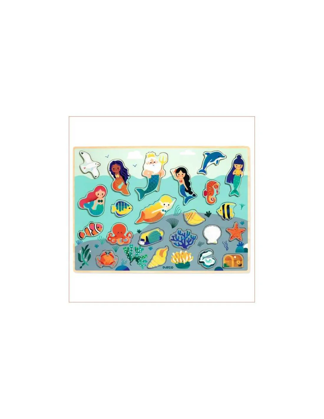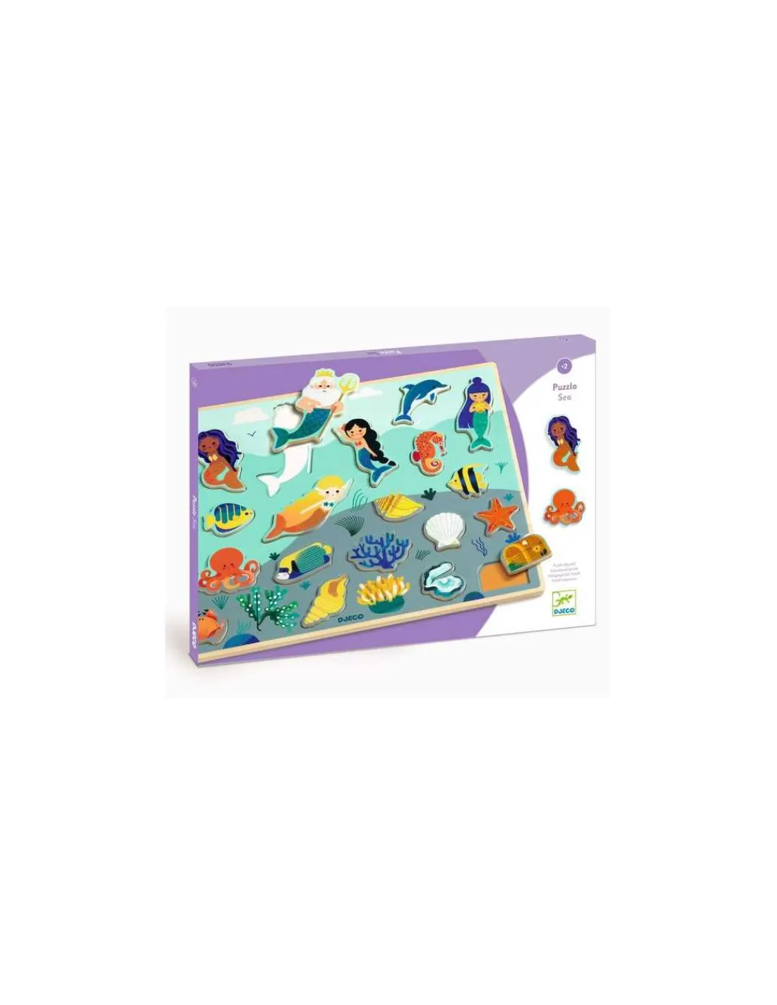 Découvrez le Puzzlo Sea de Djeco, un superbe puzzle en bois de 22 pièces pour les enfants à partir de 2 ans. Un joli puzzle à encaster sur le thème de la mer.