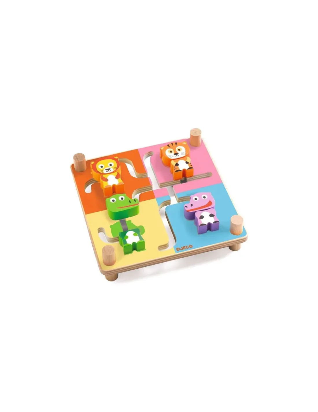 Découvrez Spinamix de Djeco, un labyrinthe en bois éducatif sur le thème des animaux pour les enfants dès 2 ans.