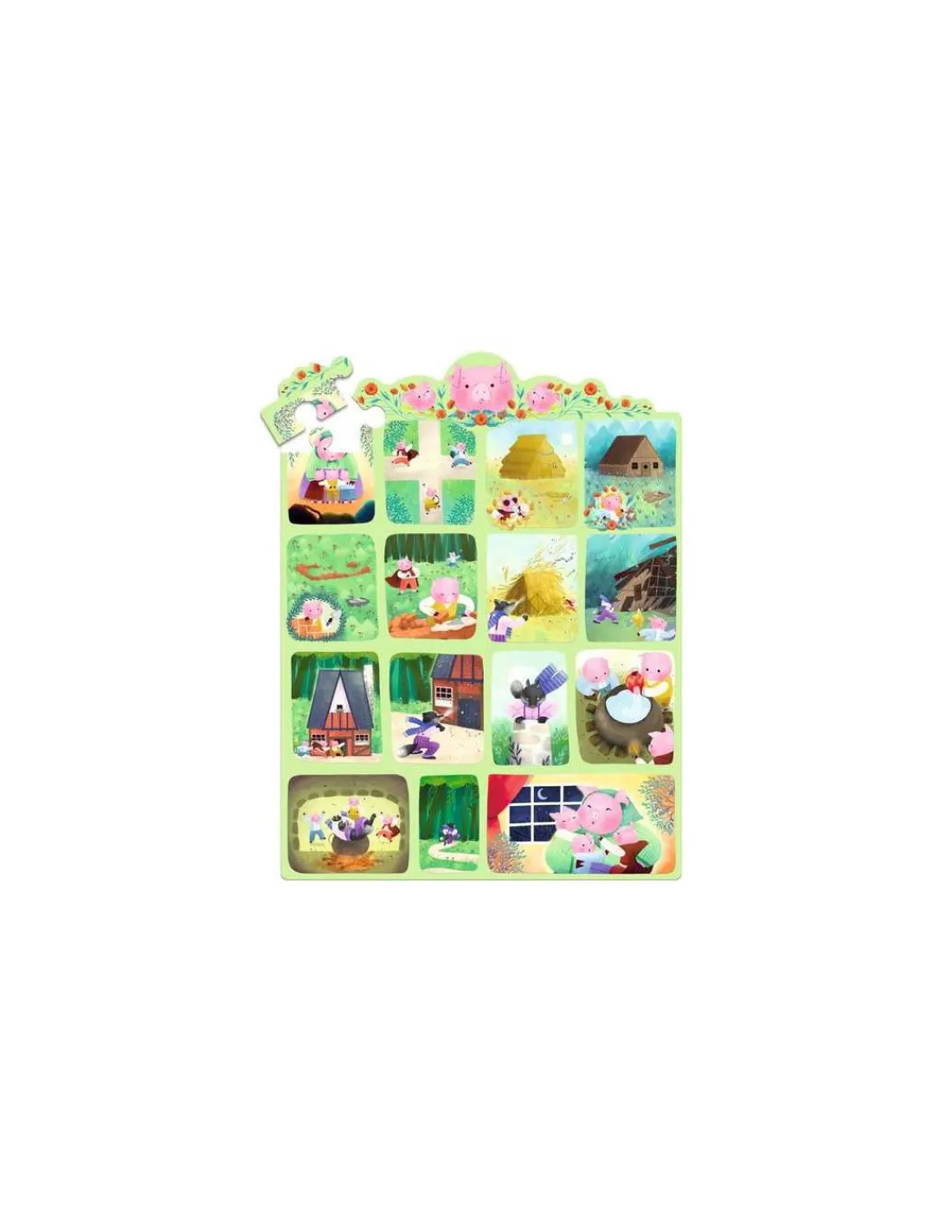 Découvrez le coffret Story puzzle Les Trois Petits Cochons de Djeco, un puzzle de 35 pièces sur le thème du célèbre conte pour les enfants dès 3 ans. Un puzzle original sous forme d’une BD muette.