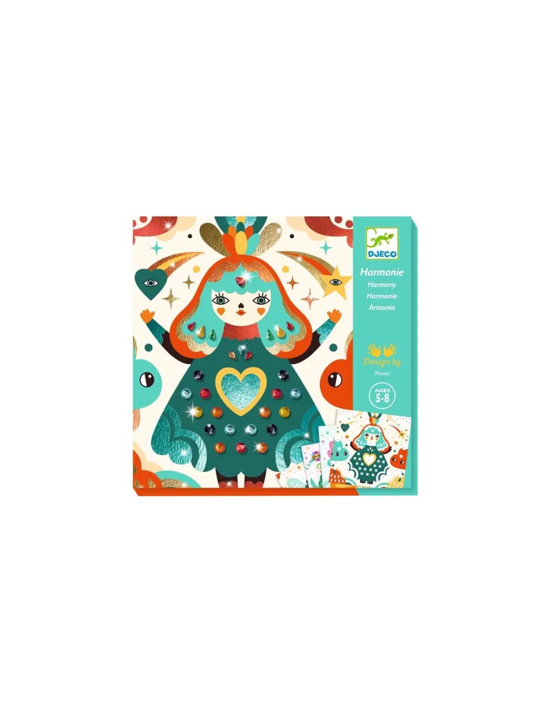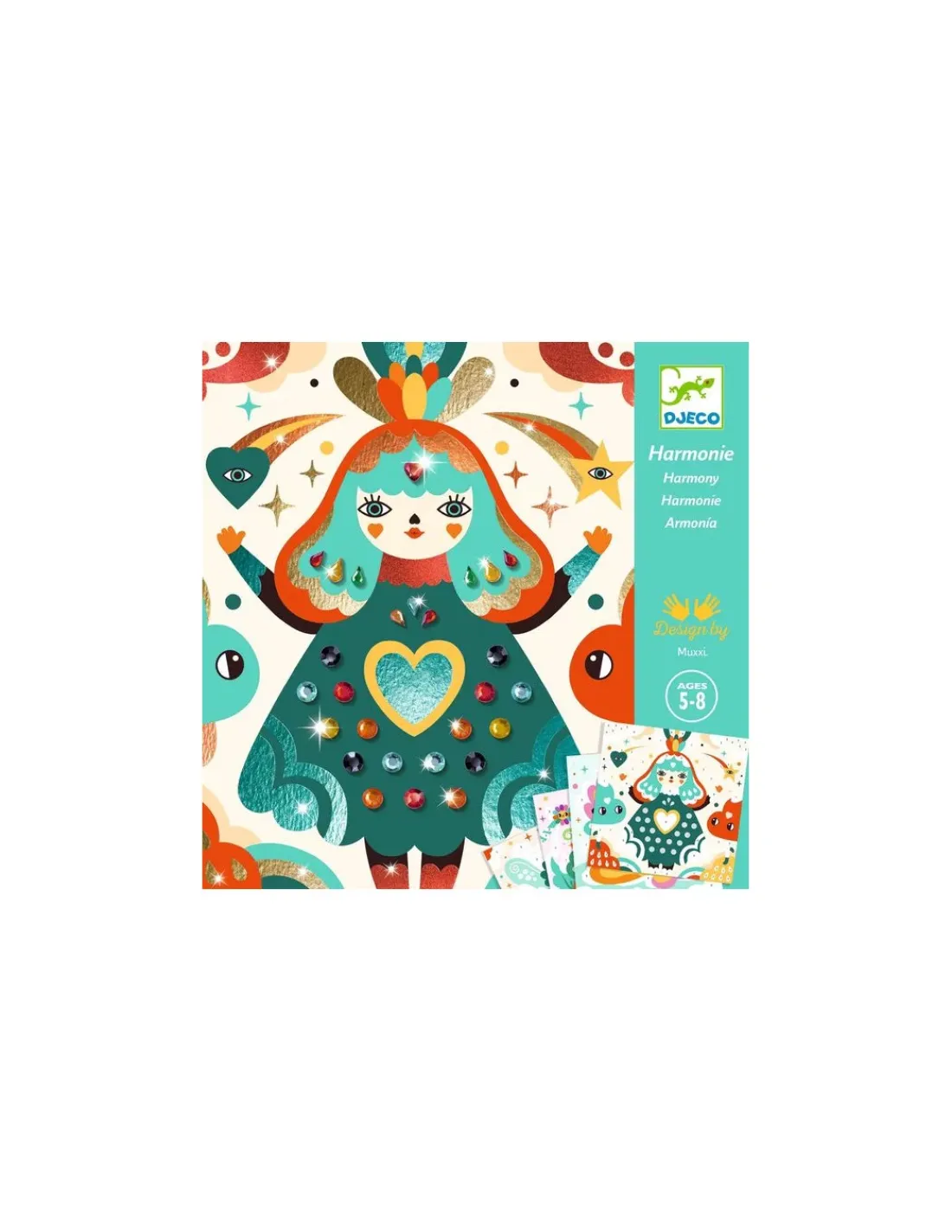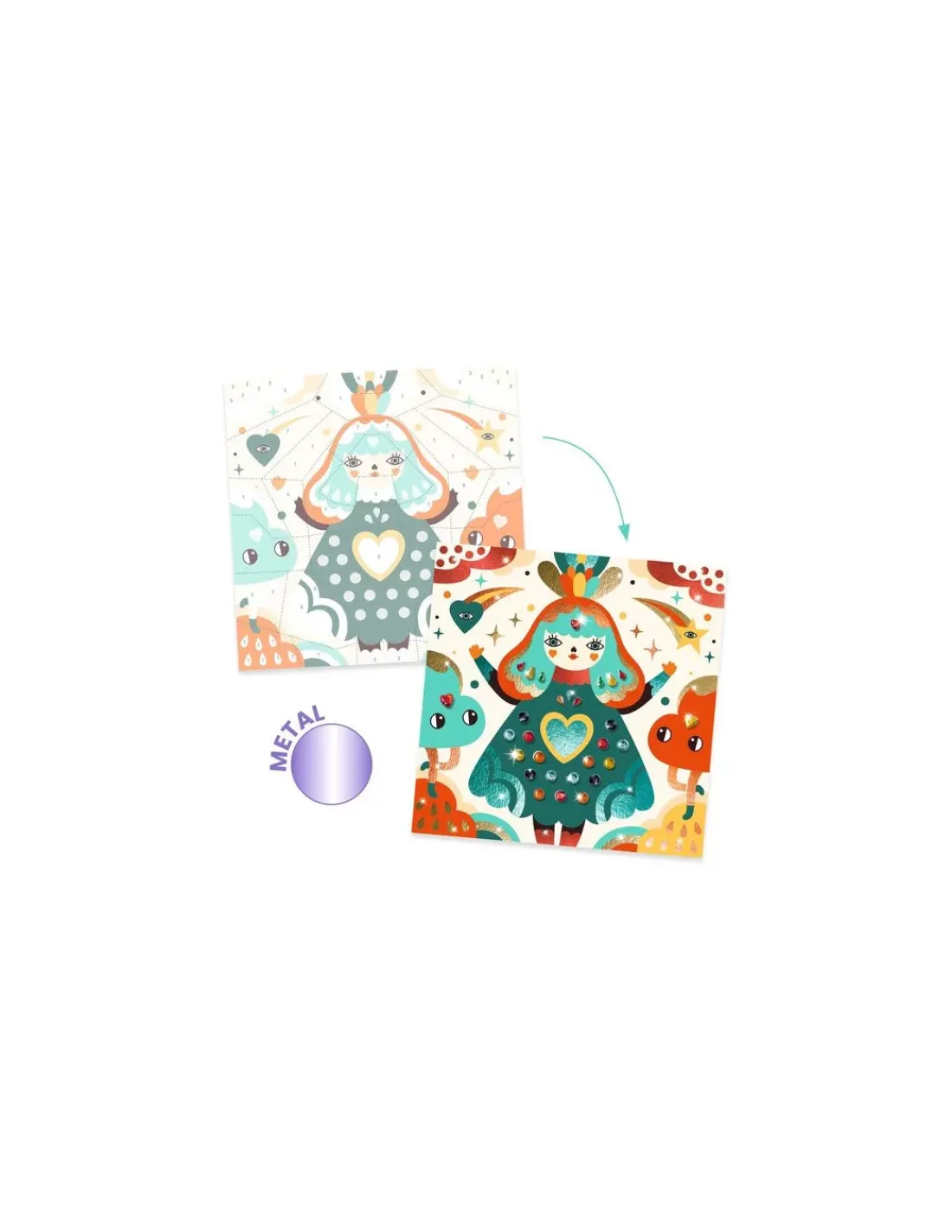 Découvrez les tableaux à métalliser Harmonie de Djeco. Une activité créative et ludique pour les enfants de 5 à 8 ans avec des strass et des feuilles métallisées.