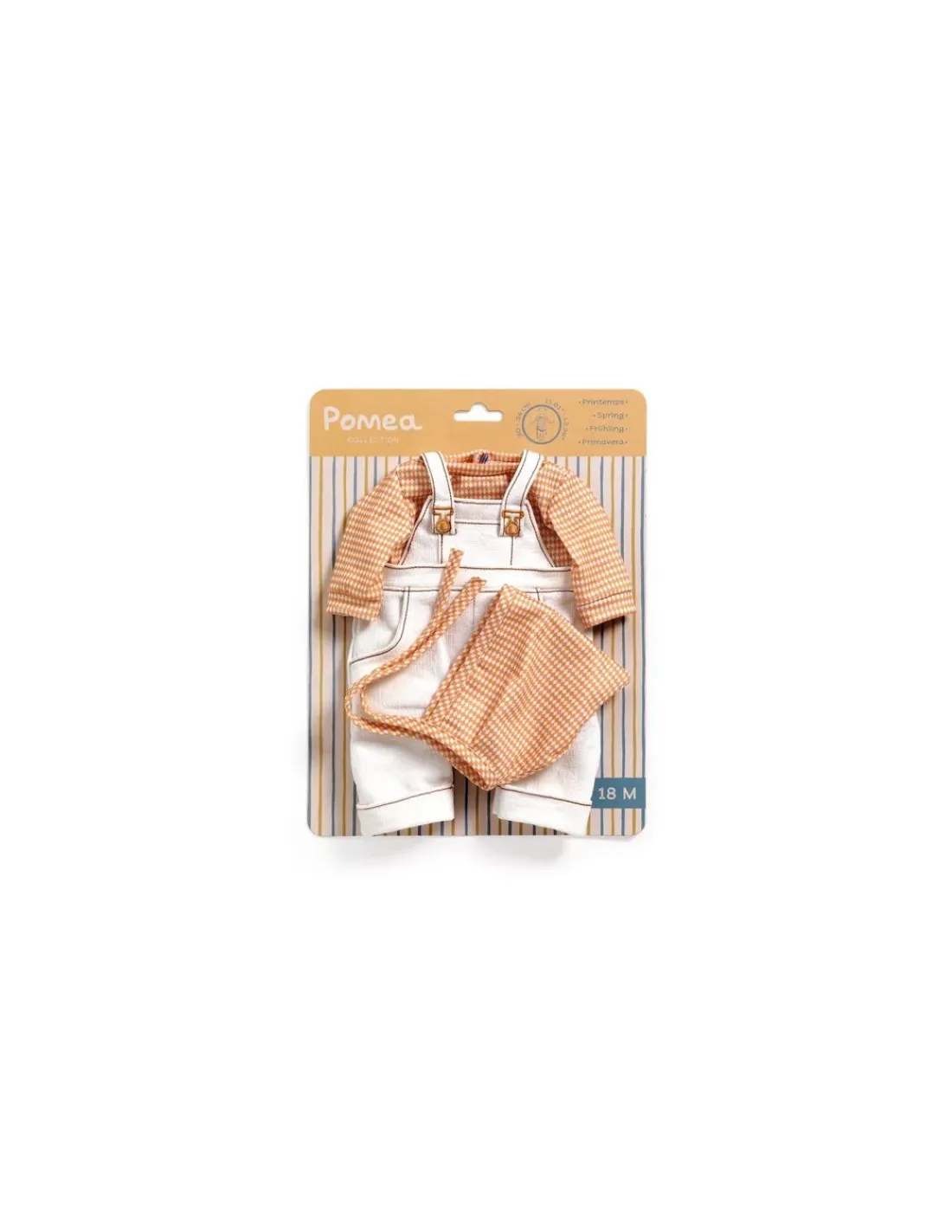 Une tenue chic et décontractée en tissu double gaze 100 % coton. Une salopette ample, qui se ferme grâce aux scratchs dissimulés derrière les attaches, permet aux petits parents d’habiller facilement la poupée. Le béguin complète joliment cette tenue.