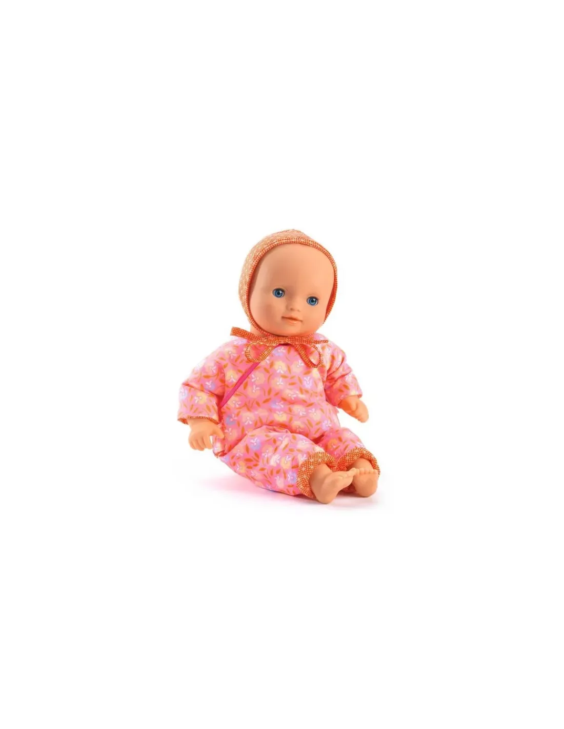 Une tenue printanière en tissu double gaze 100 % coton. Un pantalon à taille élastique et un pull fleuri qui se ferme avec des scratchs dans le dos permettent aux petits parents d’habiller facilement la poupée. Le béguin complète joliment cette tenue.