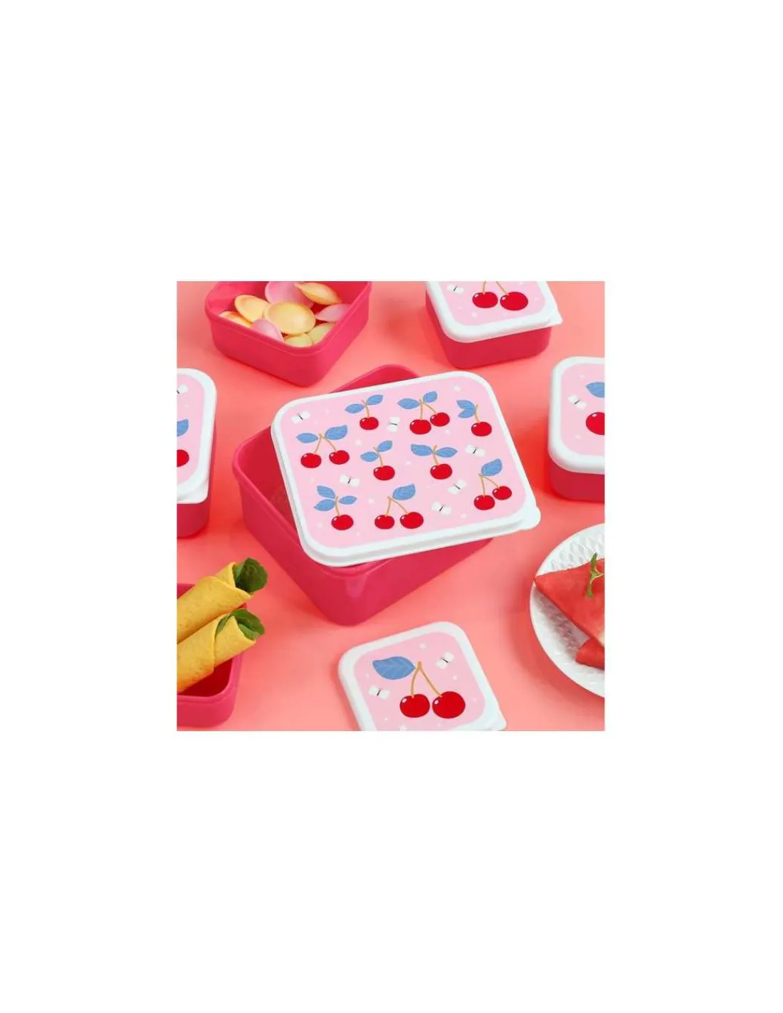 Fruits, légumes, biscuits, bonbons ou sandwichs : chaque boîte est idéale pour contenir vos encas et se glisse facilement dans un sac à dos, un cartable ou un sac à main. Utilisables ensemble ou séparément, les boîtes Cherries peuvent facilement se ranger les unes dans les autres, optimisant ainsi l’espace.