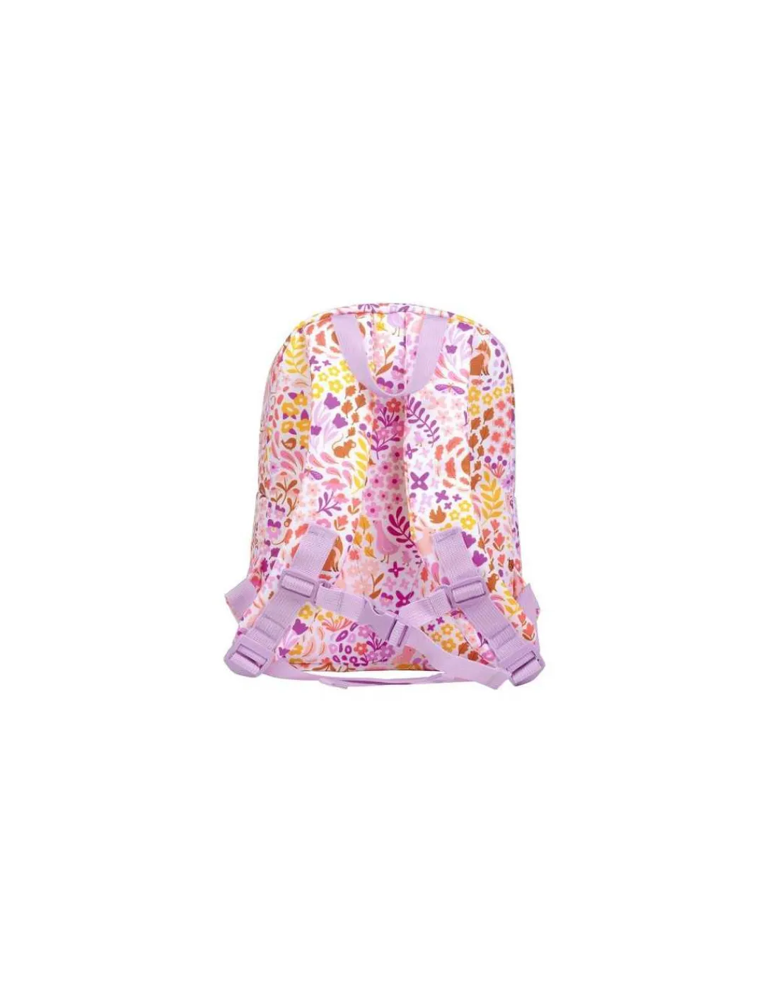 Découvrez le petit sac à dos Jardin fleuri de A Little Lovely Company, le sac coloré et joliment illustré sur le thème des fleurs, idéal pour les enfants de maternelle.