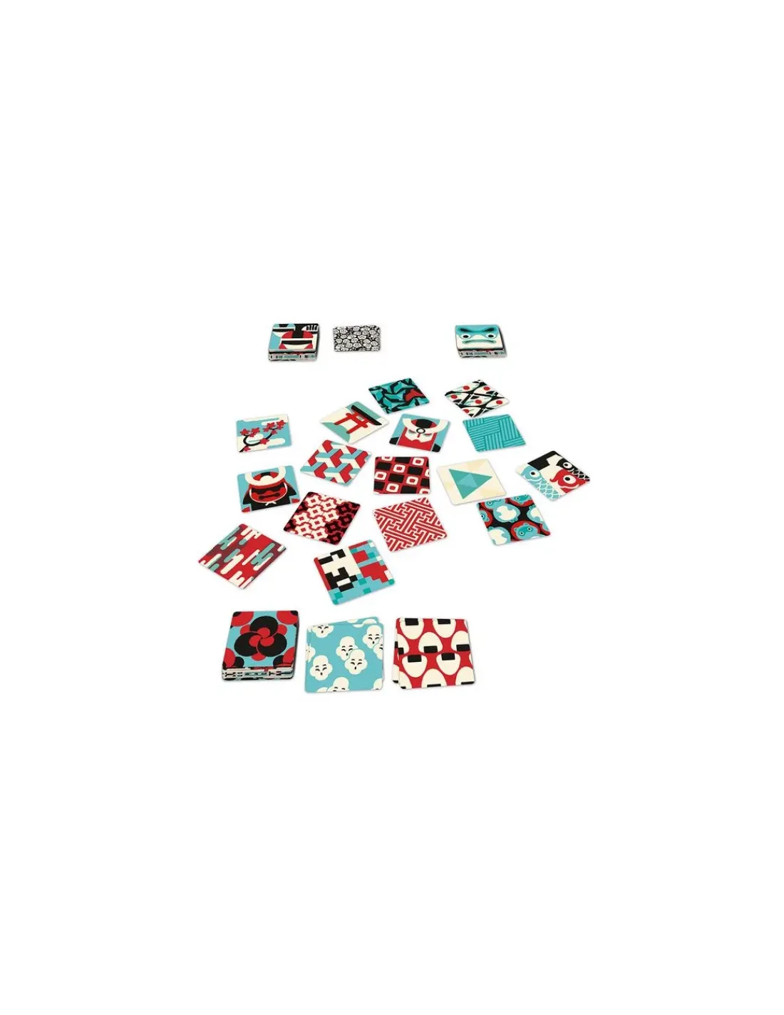 Les cartes vont s’accumuler sur la table en formant une mosaïque colorée : retrouvez vite les motifs strictement identiques, qu’ils soient au sommet d’une pile, tirés il y a plusieurs tours ou il y a quelques secondes à peine. Certains sont même en triple.
