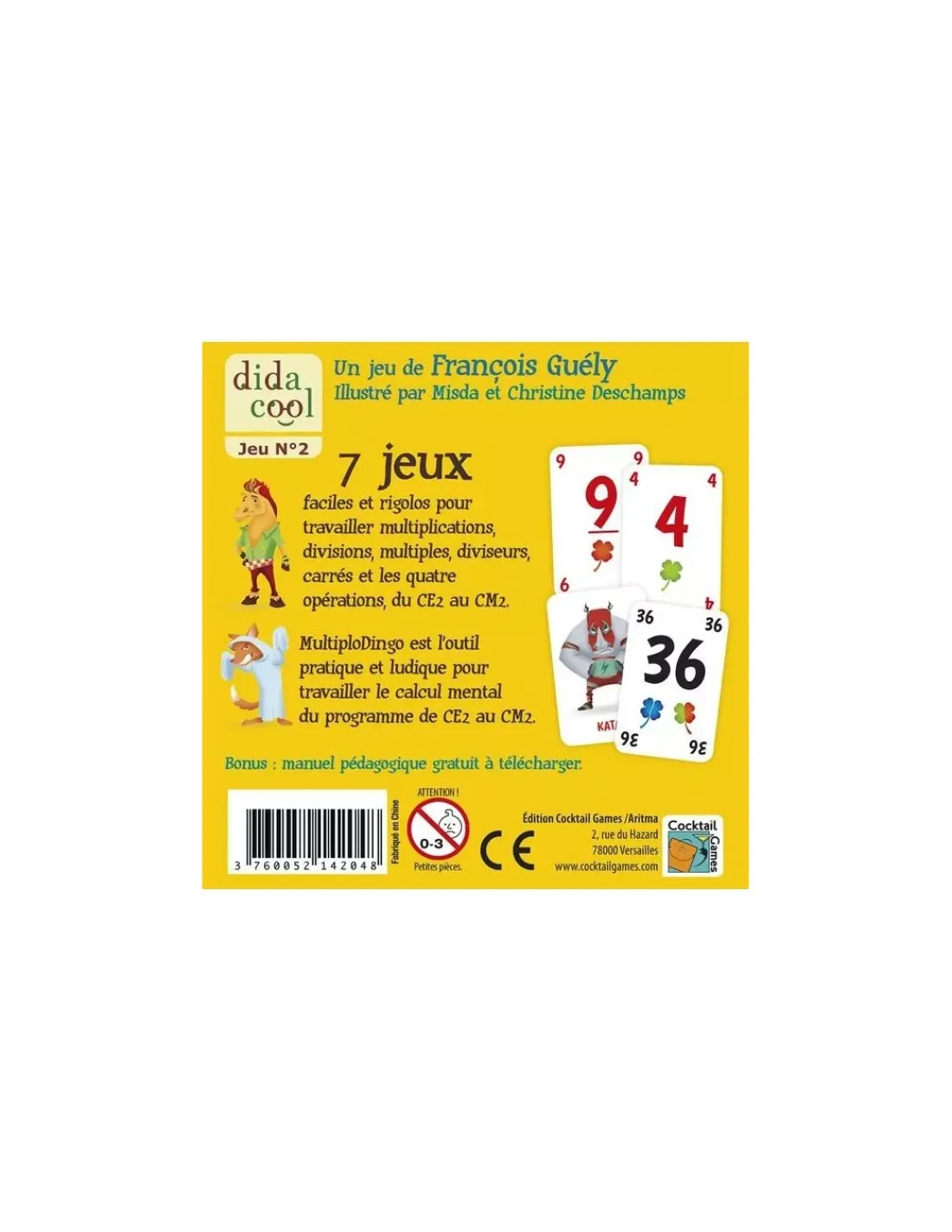 Découvrez le jeu Multiplodingo de Cocktail Games, un jeu de cartes éducatif à partir du CE2 pour travailler les 4 opérations, les carrés, les multiples et les diviseurs.