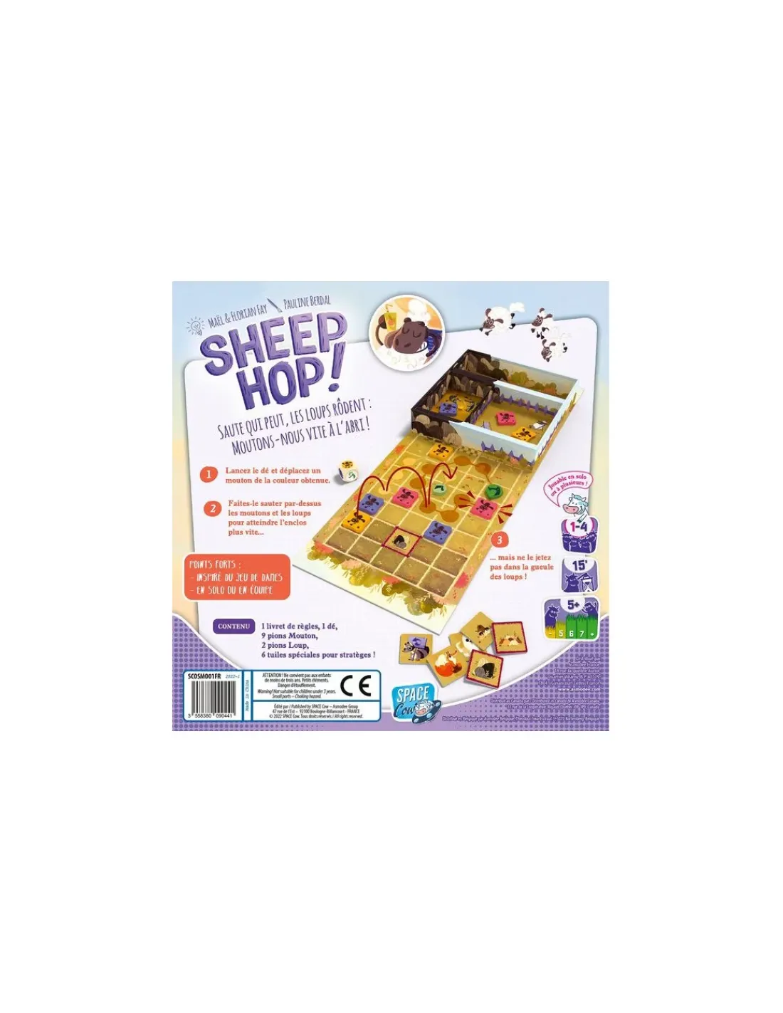 Découvrez le jeu Sheep Hop de Space Cow, un jeu de dames pour jouer de 1 à 4 joueurs à partir de 5 ans. Déplacez tactiquement vos pions de case en case comme au jeu de dames.