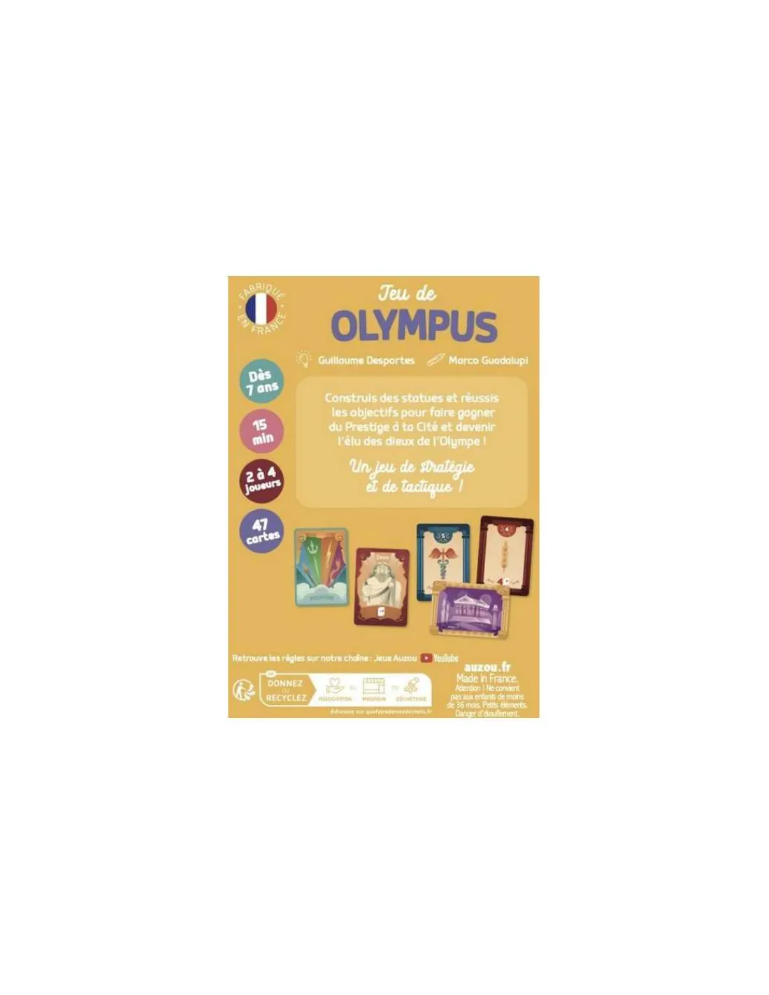 Découvrez le jeu de Olympus de Auzou, un jeu de cartes tactique et stratégique pour les enfants à partir de 7 ans. Un jeu de société fabriqué en France sur le thème de la mythologie.
