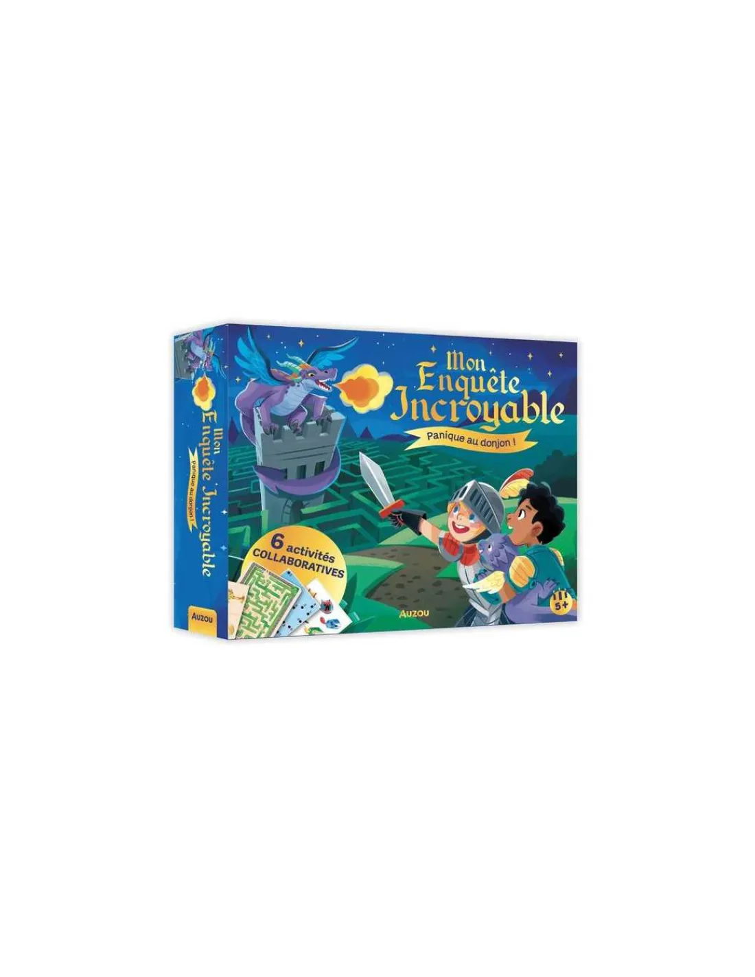 Découvrez le jeu Mon enquête incroyable panique au donjon de Auzou, un coffret pour organiser une grande enquête coopérative ! Un jeu de piste géant parfait pour les anniversaires ou les après-midis de jeux à partir de 5 ans.