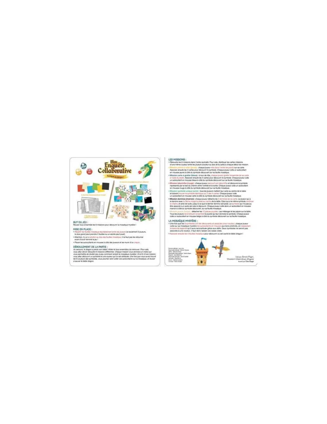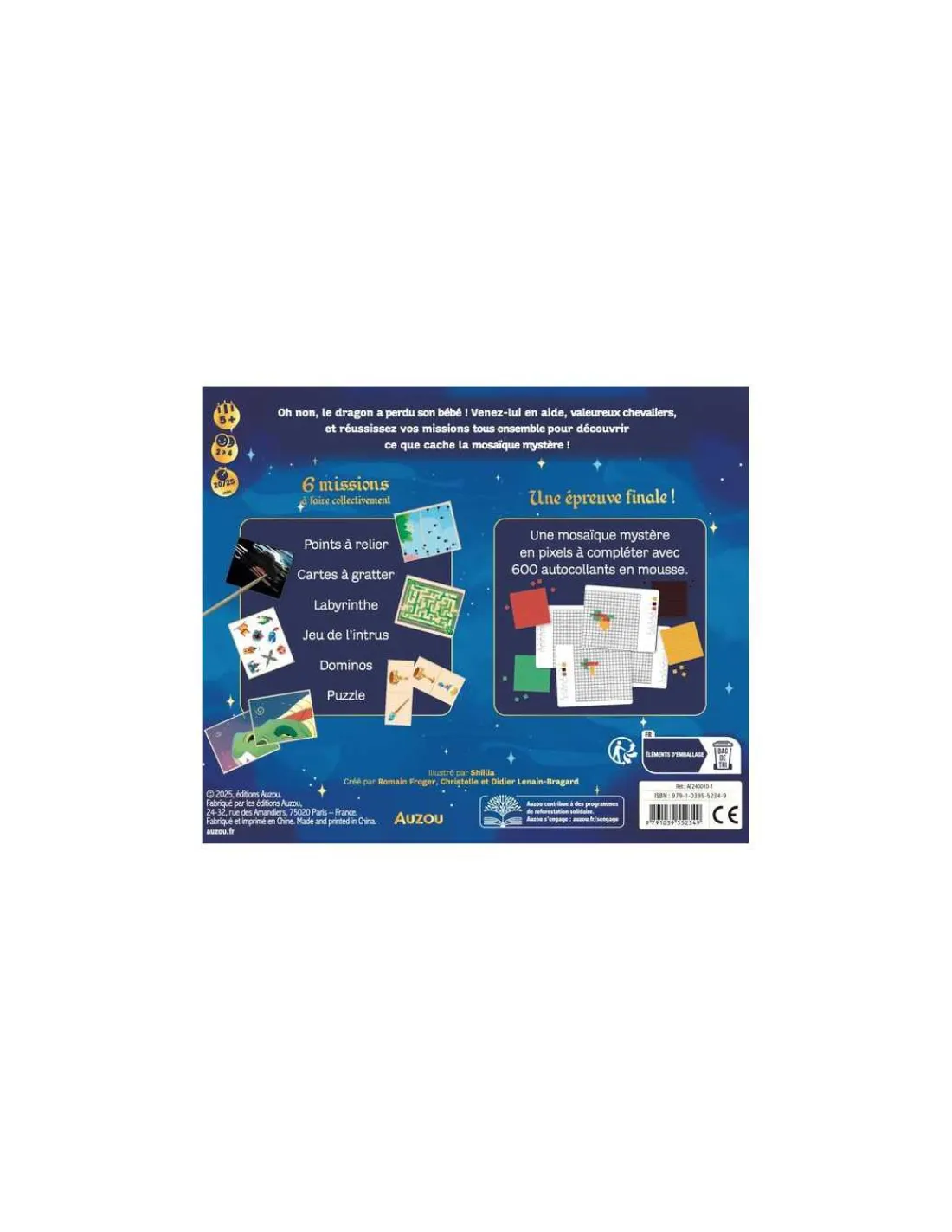 Chevaliers et chevalières intrépides, partez à l’aventure! Un incroyable coffret qui contient 6 missions à réaliser collectivement. Chaque mission apporte un indice sur le code couleur de la mission finale. Découvrez où se trouve caché le bébé dragon pour le sauver !