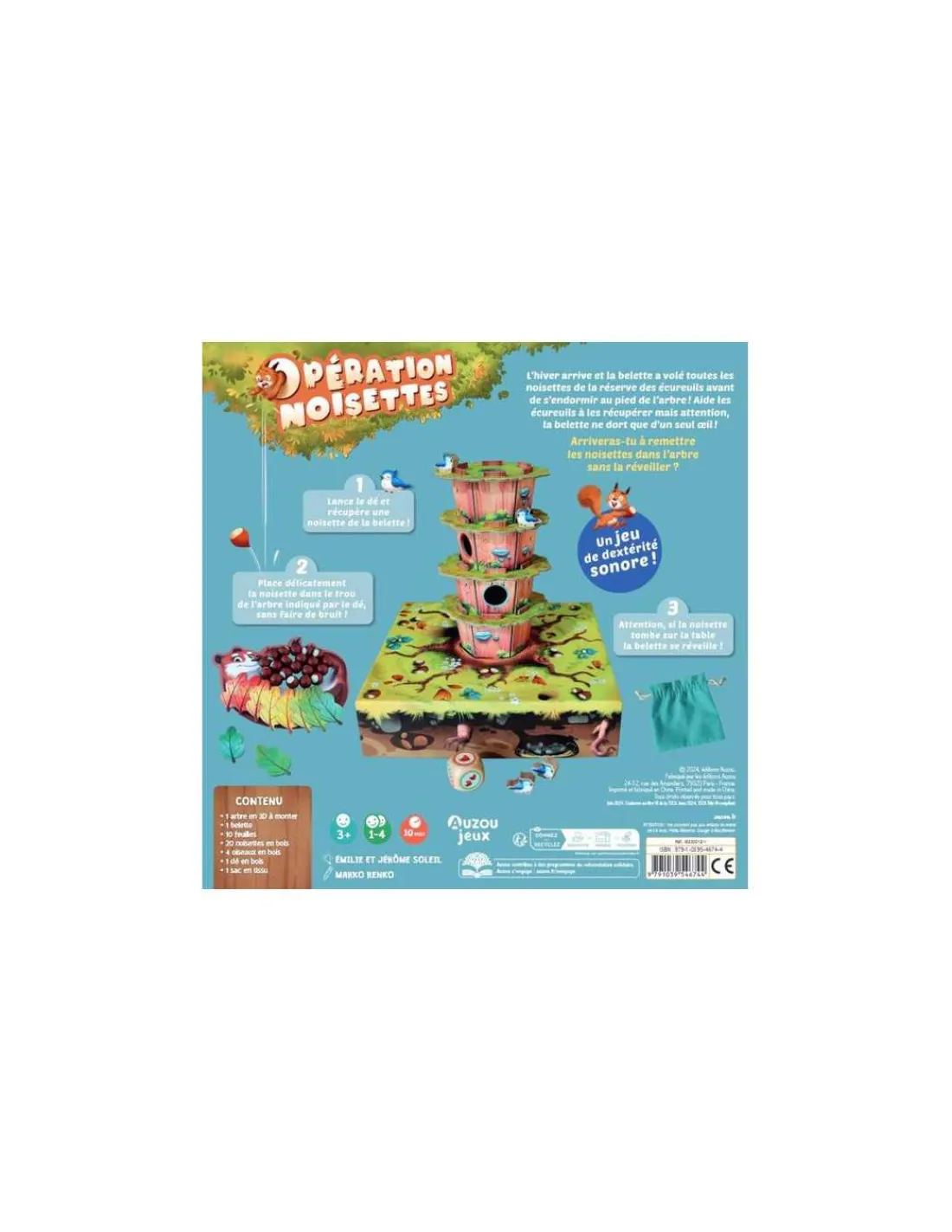 Découvrez le jeu Opération noisettes de Auzou, un jeu de dextérité sonore palpitant et coopératif pour jouer en famille avec des enfants dès 3 ans. Le jeu de l’année enfant As d’or 2025 !