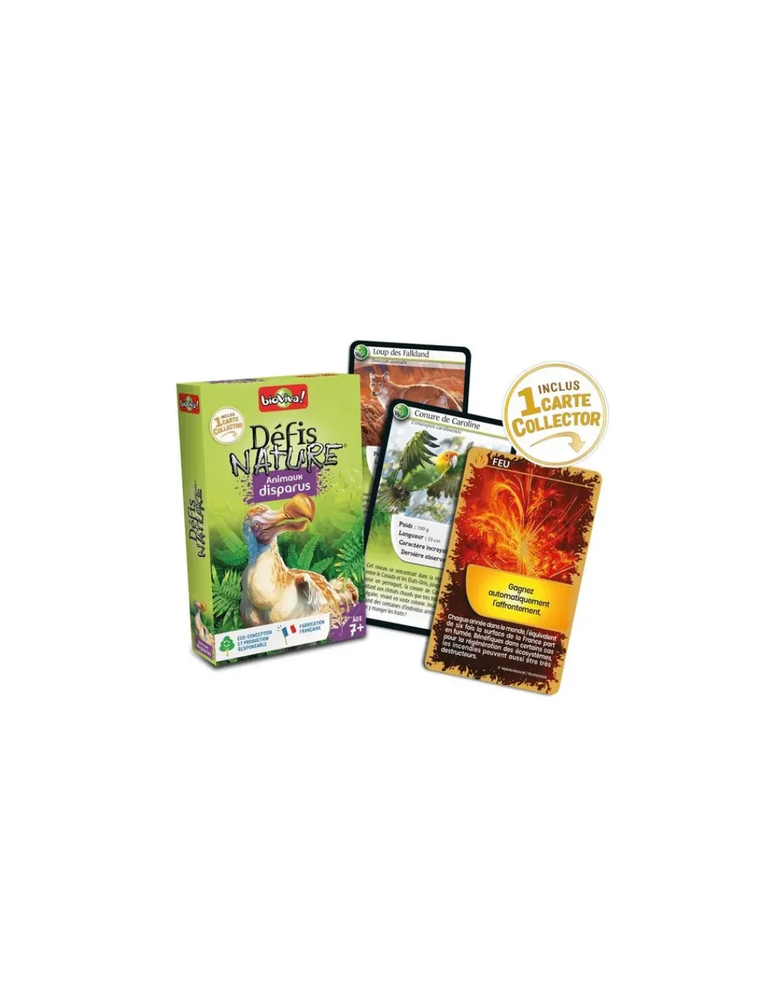 Découvrez Défis nature Animaux disparus de Bioviva, un jeu de cartes éducatif à partir de 7 ans, qui vous emmène à lla rencontre des animaux récemment disparus.