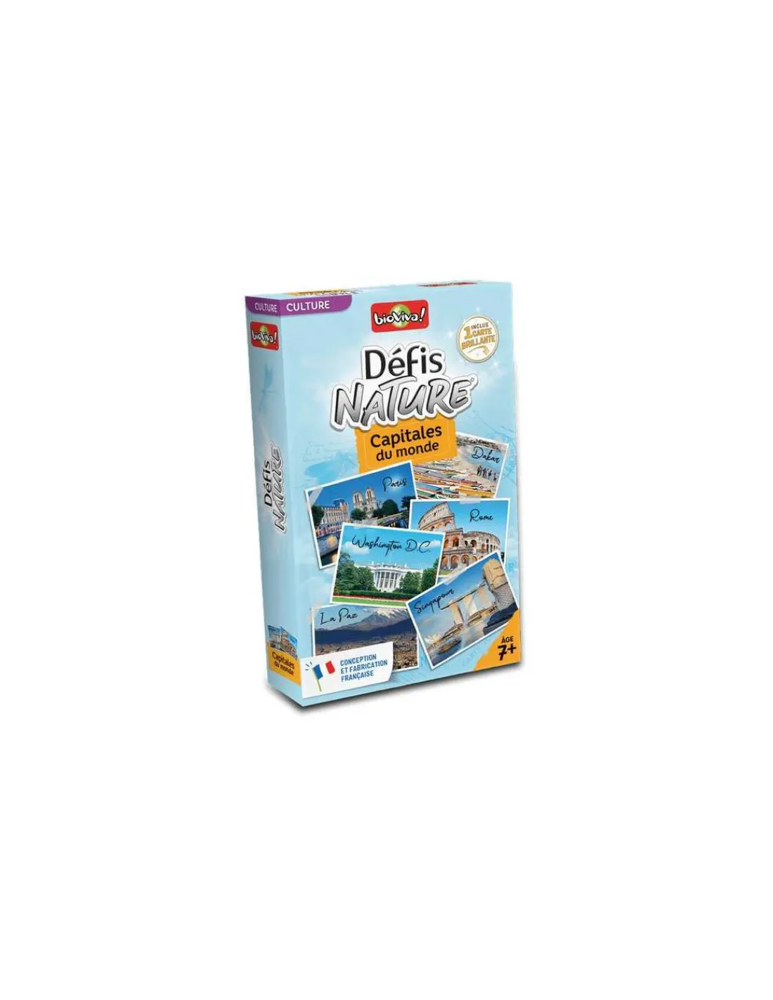 Découvrez Défis Nature Capitales du Monde de Bioviva, un jeu de cartes éducatif pour les enfants dès 7 ans, qui vous emmène à la rencontre des capitales emblématiques du monde. Un jeu de société Made in France.