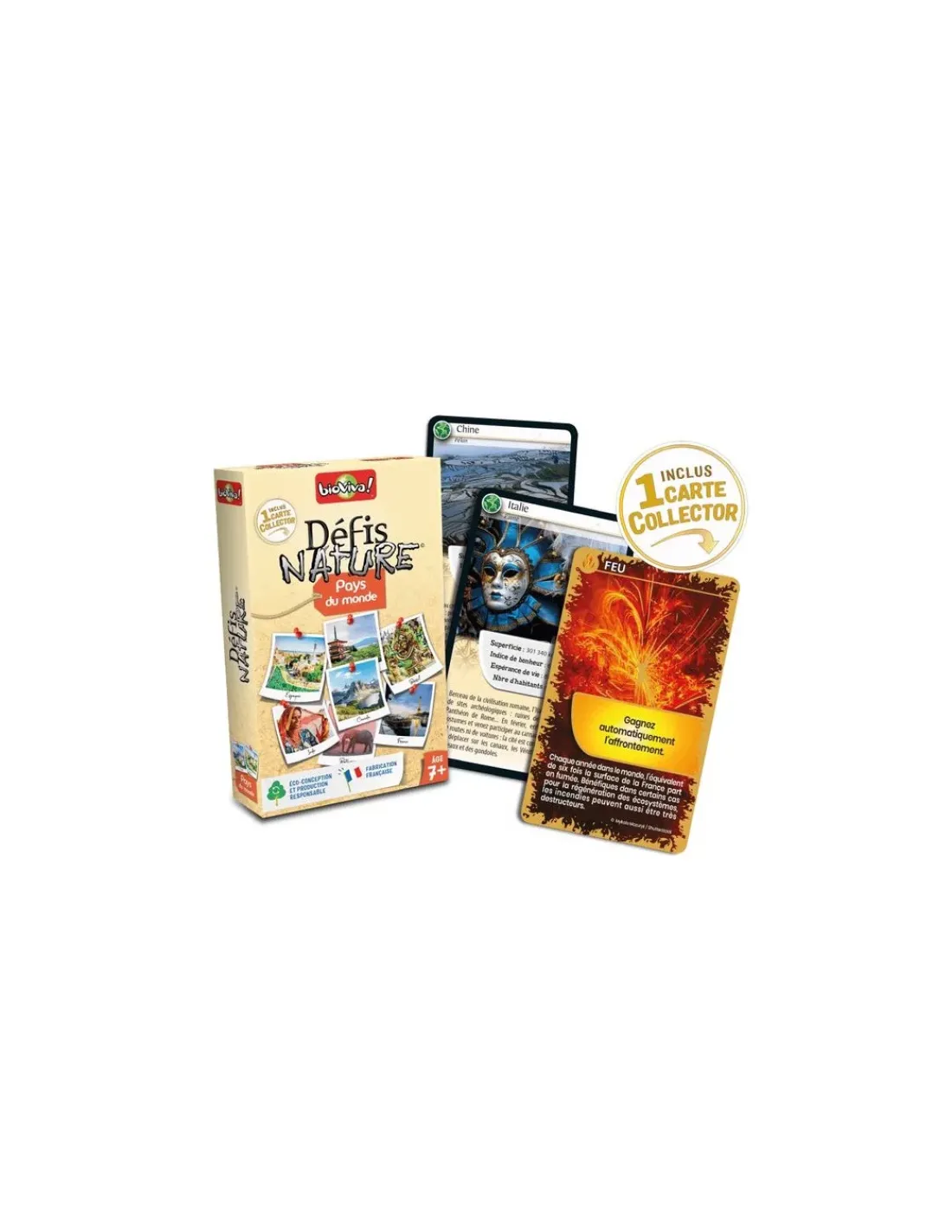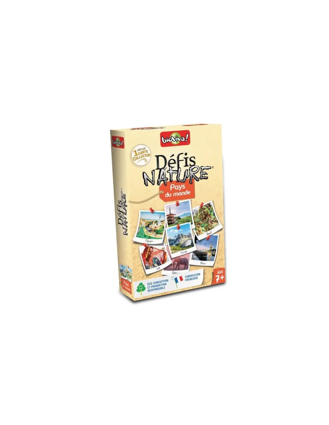 Découvrez Défis nature Pays du monde de Bioviva, un jeu de cartes éducatif à partir de 7 ans, qui vous emmène à la découverte des pays du monde et de leur incroyable diversité.