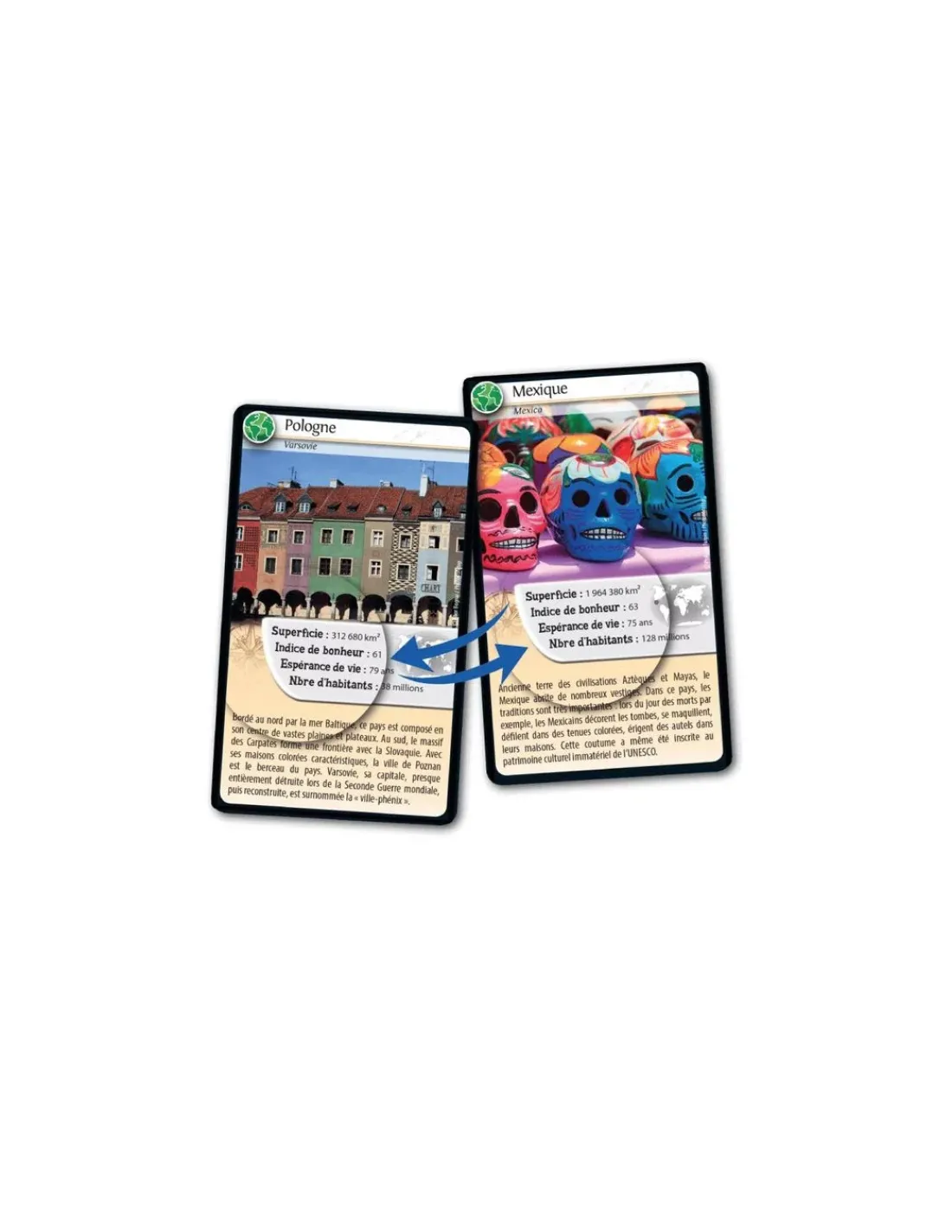 Saurez-vous identifier la caractéristique qui vous semble la plus forte pour gagner la manche et remporter les cartes des autres joueurs? Le premier joueur qui collecte toutes les cartes du jeu remporte la partie!