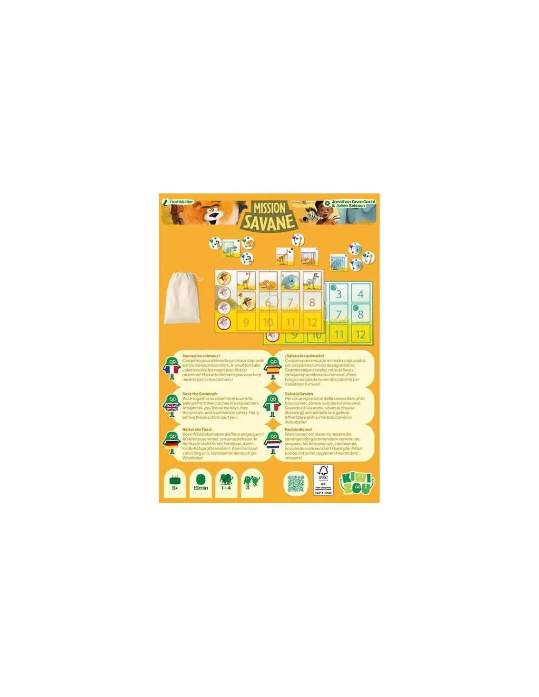 Avec ses deux niveaux de jeu pour encore plus de challenge, Mission Savane est une aventure coopérative idéale pour initier les plus jeunes à l’entraide et à la prise de décision. Jouable en solo ou en équipe, ce jeu drôle et immersif garantit des moments de tension et de joie jusqu’à la dernière minute!