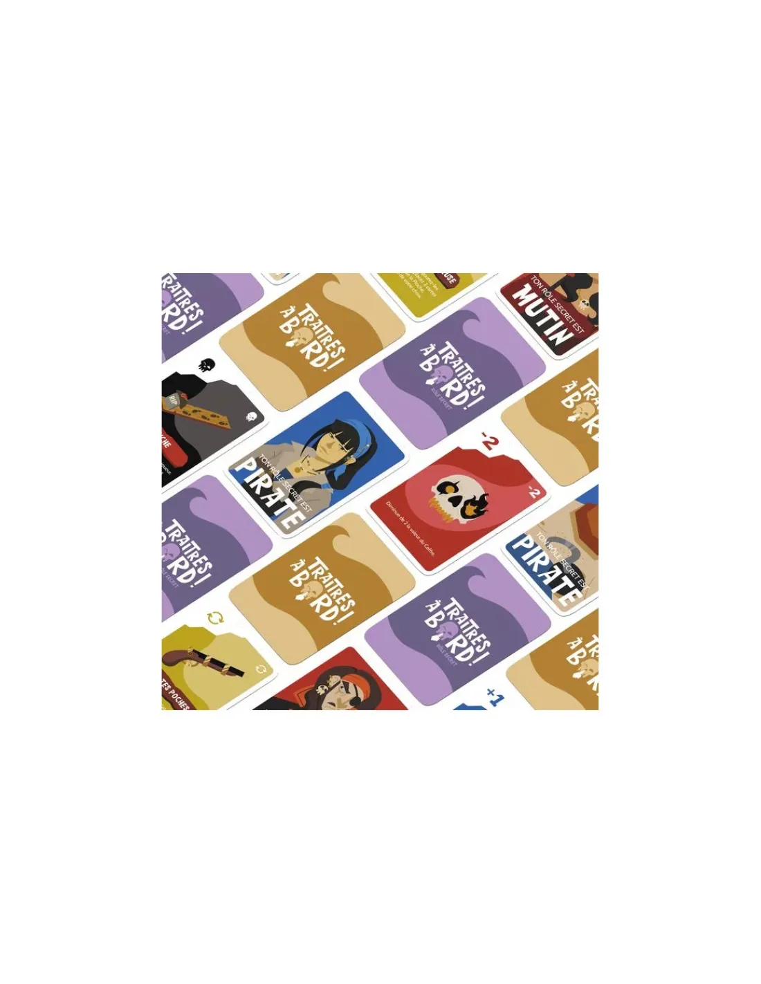 Si vous êtes Pirate, coopérez pour remplir suffisamment le coffre ou pousser les Mutins à l’eau. Si vous êtes Mutin, bluffez pour saboter la collecte des Pirates ou semer le chaos au sein du navire. Tout au long de la partie, assurez-vous de constamment discuter, questionner et partager des informations avec les autres joueurs afin de développer votre stratégie et de démasquer les traitres à bord…!