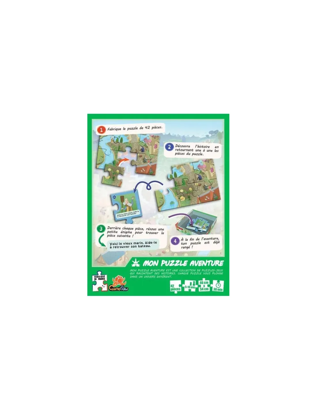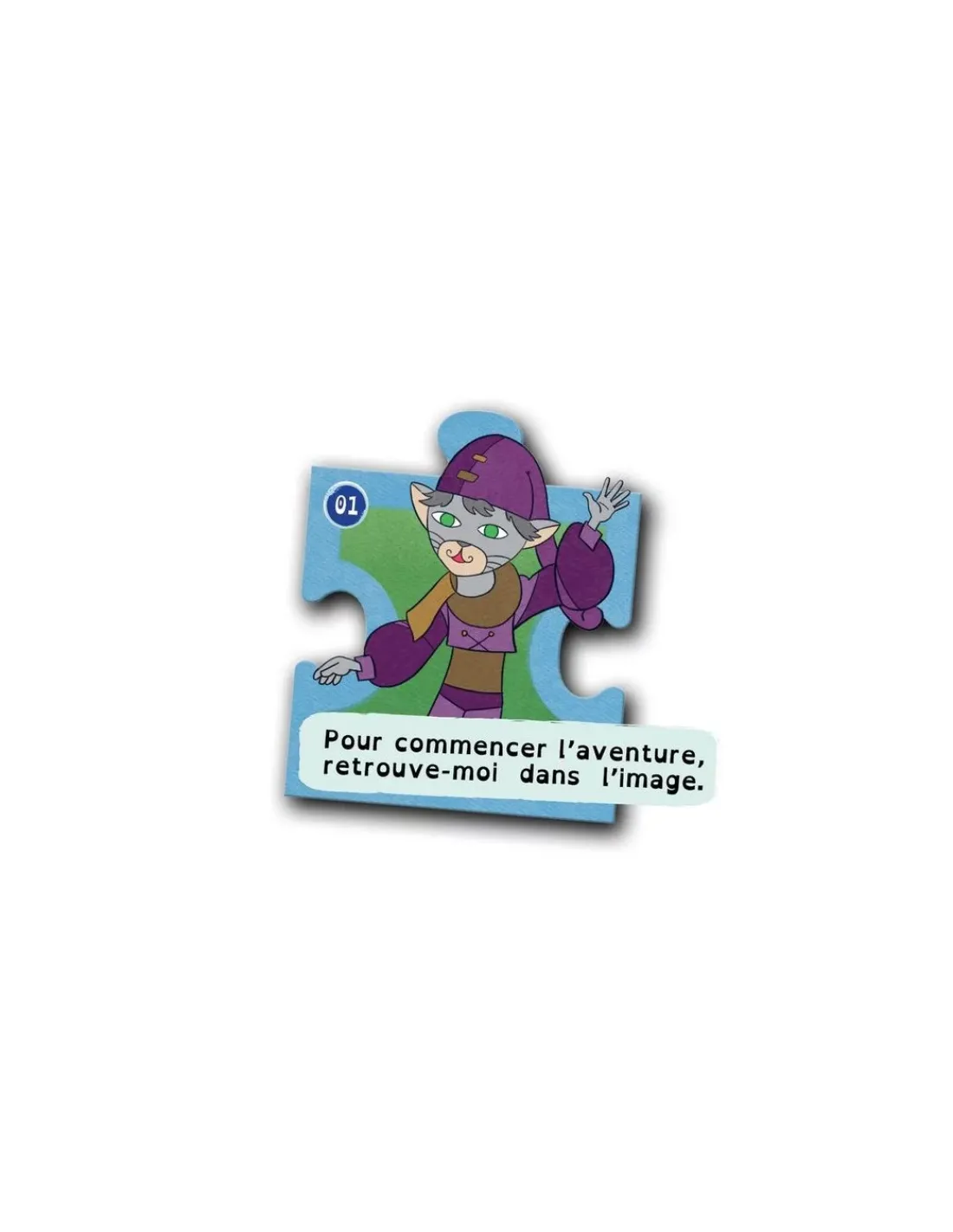 Une fois le puzzle réalisé et les 42 pièces placées, elles devront ensuite être retirées dans l’ordre pour découvrir l’histoire écrite sur leur dos. Chaque nouvelle pièce retournée donne l’indice pour trouver la suivante.