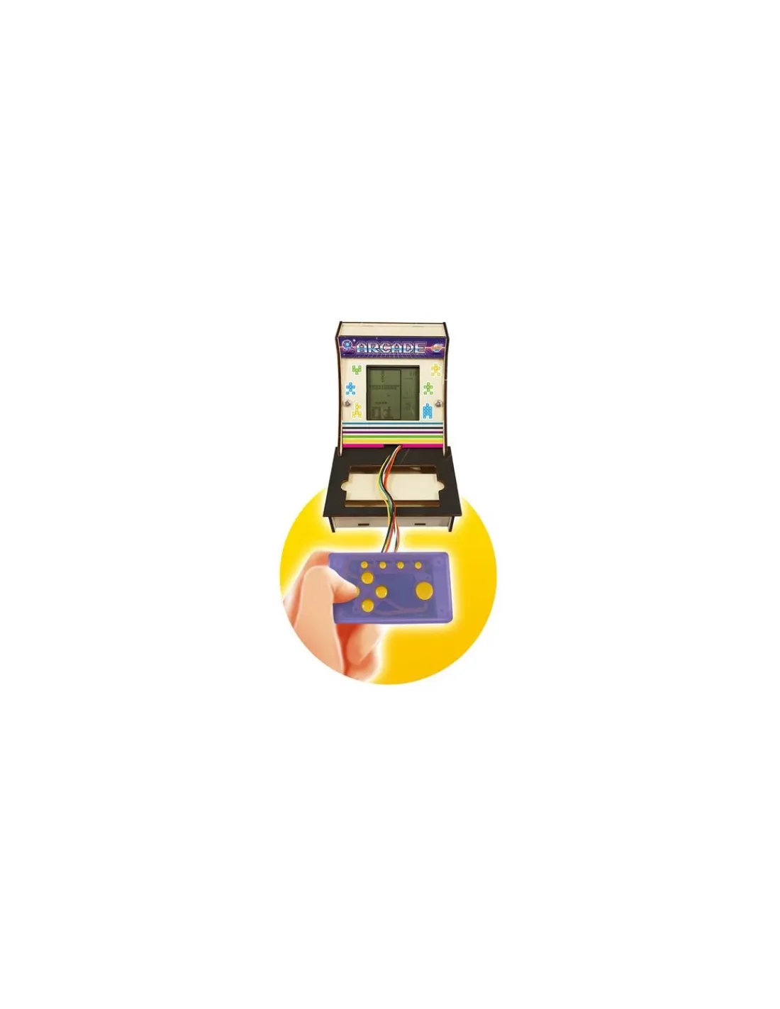 Votre enfant va assembler sa borne, sa manette et le haut parleur pour pouvoir ensuite jouer à 12 jeux vidéos vintage comme Tetris, casse-brique, une course automobile…