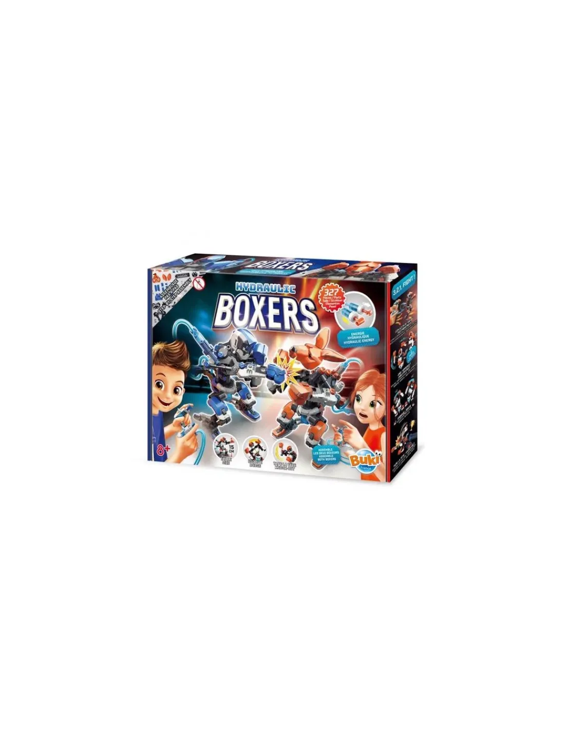 Découvrez le coffret Boxeurs hydraulique de Buki, un jouet scientifique pour les enfants à partir de 8 ans. Deux boxeurs à assembler qui fonctionnent à l’énergie hydropneumatique.