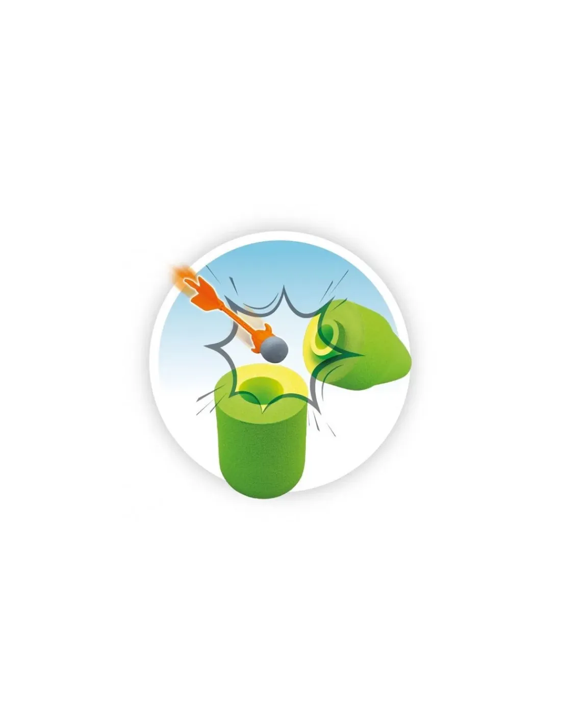 De conception légère et portable, votre enfant va tirer ses fléchettes avec son lance-pierre sur une bouteille en mousse qui « s’éclate » lorsqu’on la touche. Inclus : 3 fléchettes sécurisées et des élastiques de rechange.