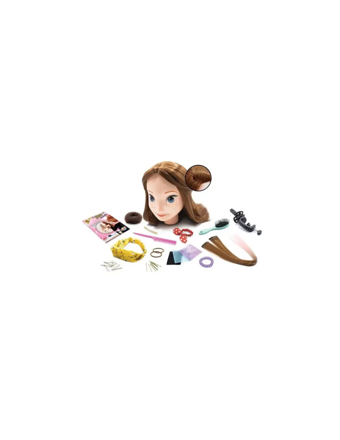 Plus de 15 véritables accessoires inclus: brosse, peigne, pinces, chouchou donut, bandeau, extensions de cheveux avec effet tie & dye rose… 30 coiffures expliquées pas à pas dans une notice illustrée pour que votre enfant s’entraîne et puisse reproduire les coiffures sur ses propres cheveux.