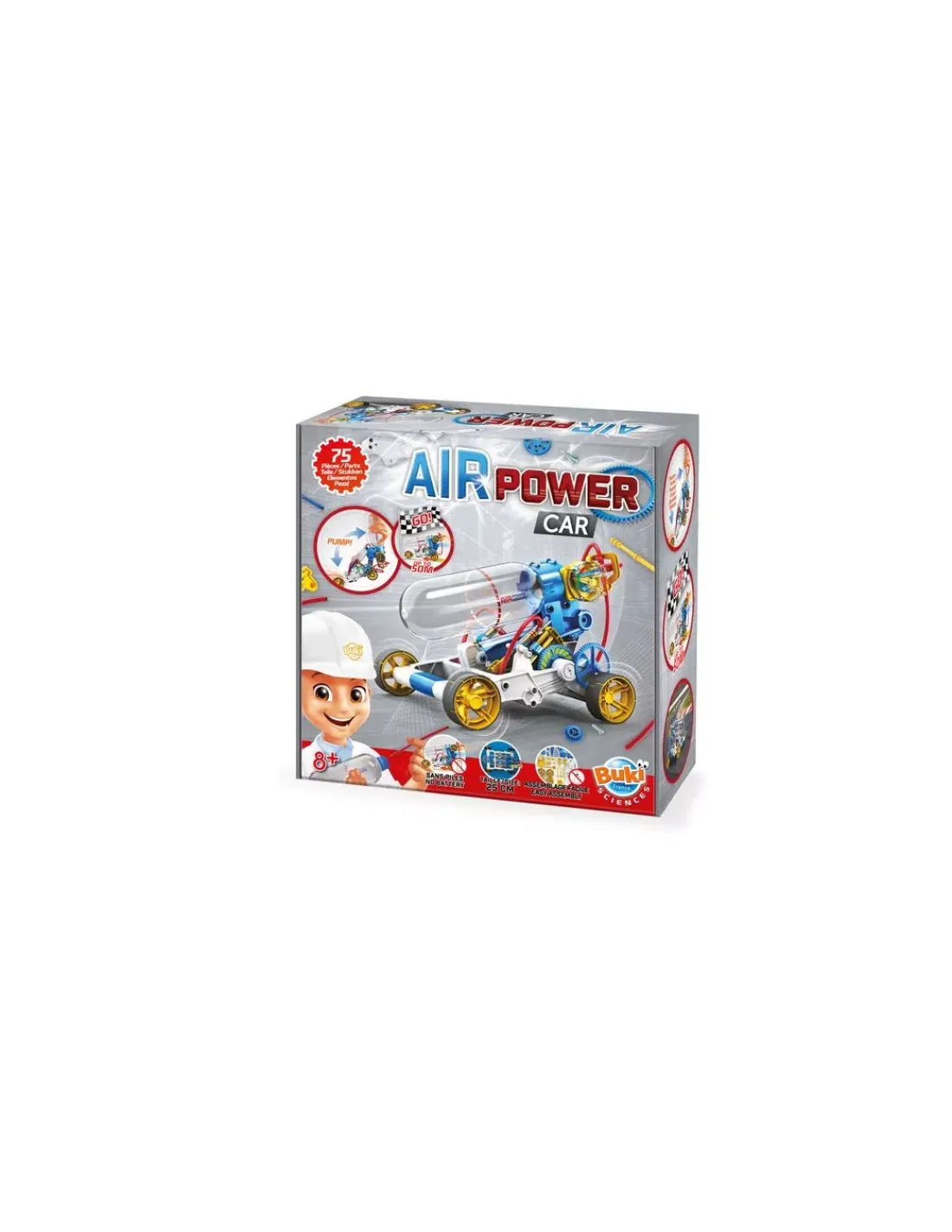 Découvrez le véhicule à air comprimé de Buki, un véhicule à construire avec 75 pièces à partir de 8 ans et qui avancera grâce à de l’air comprimé.
