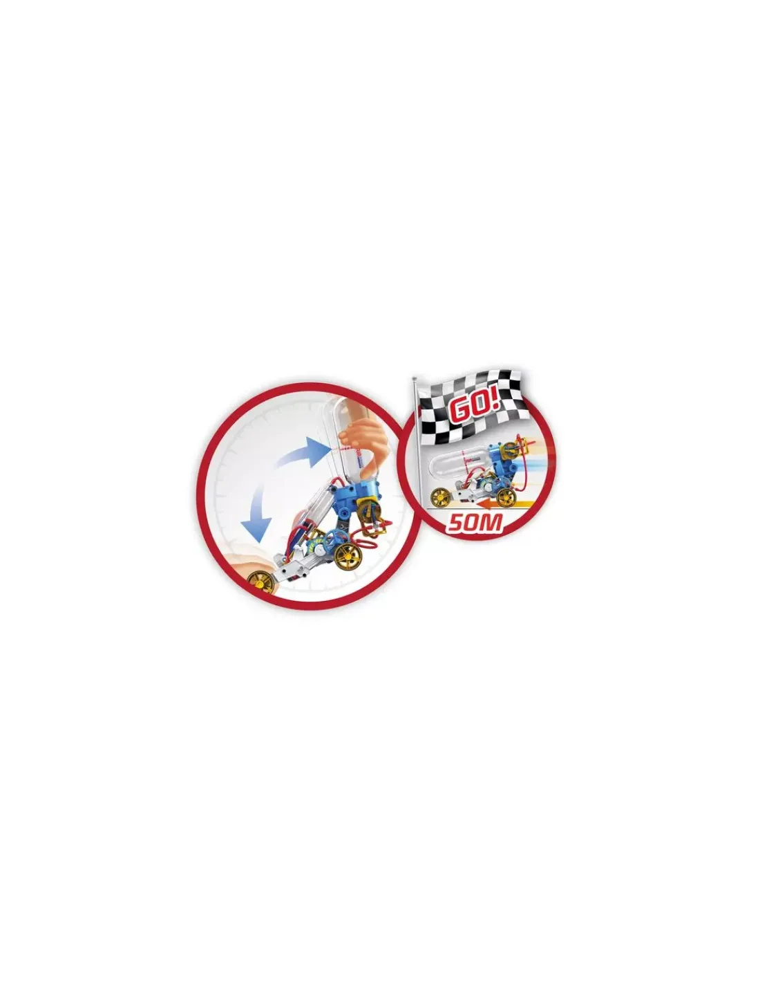 Pompe pour remplir la jauge. Lorsque le voyant est situé dans le vert, ton véhicule est prêt à se lancer. Donne une impulsion et regarder-le rouler. Il peut parcourir jusqu’à 50 mètres.