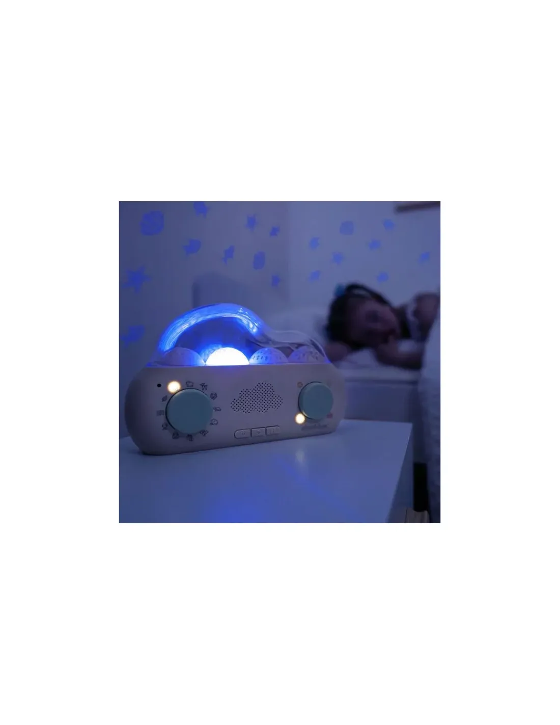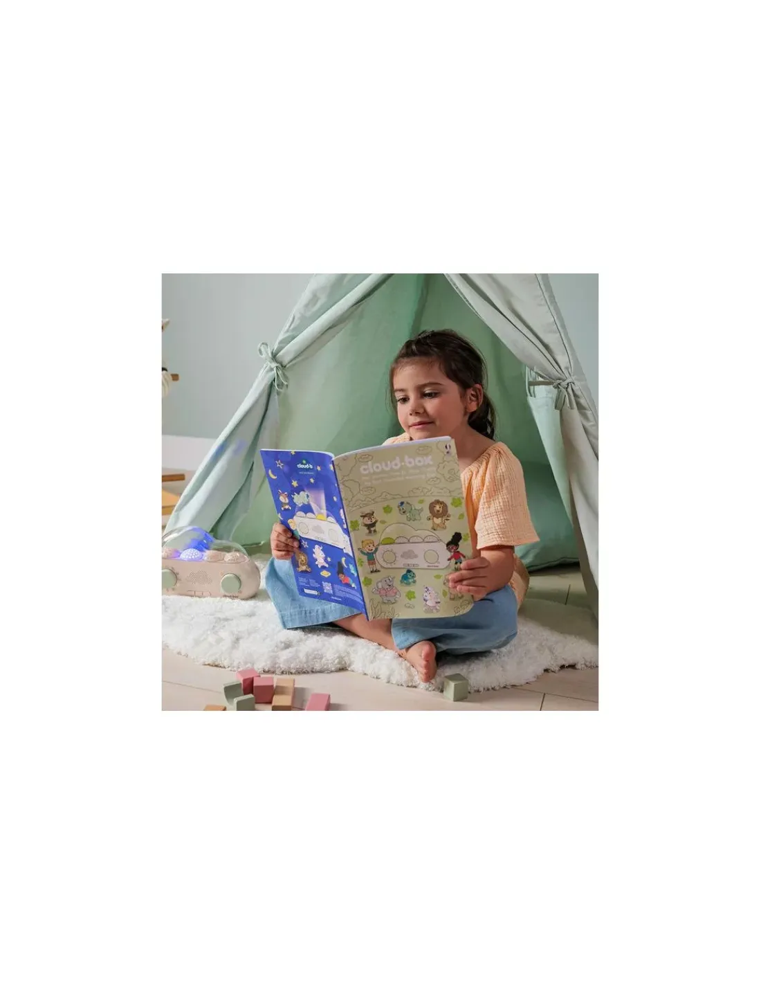 À la fois conteuse à histoires et veilleuse à projections, la Cloud Box est très simple d’utilisation. Elle propose 36 histoires originales et amusantes autour de 9 personnages aux personnalités très différentes. Il y a également 8 mélodies apaisantes et 8 bruits blancs qui créent une atmosphère paisible, ainsi que 4 projections lumineuses synchronisées qui changent à chaque histoire pour créer un spectacle qui donne vie à la narration. Découvrez des univers enchanteurs : Océan, Forêt, Espace et Village.