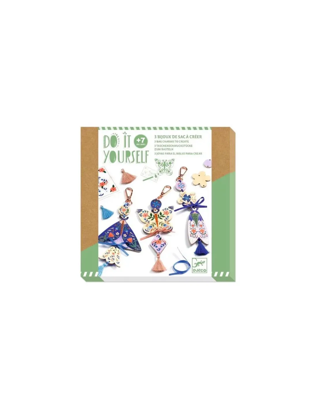 Découvrez le coffret Bijoux de sac à créer Butterflies de la collection Do It Yourself de Djeco, une activité créative pour les enfants à partir de 7 ans, qui réaliseront 3 magnifiques bijoux en bois à l’aide de décalcomanies et d’accessoires.