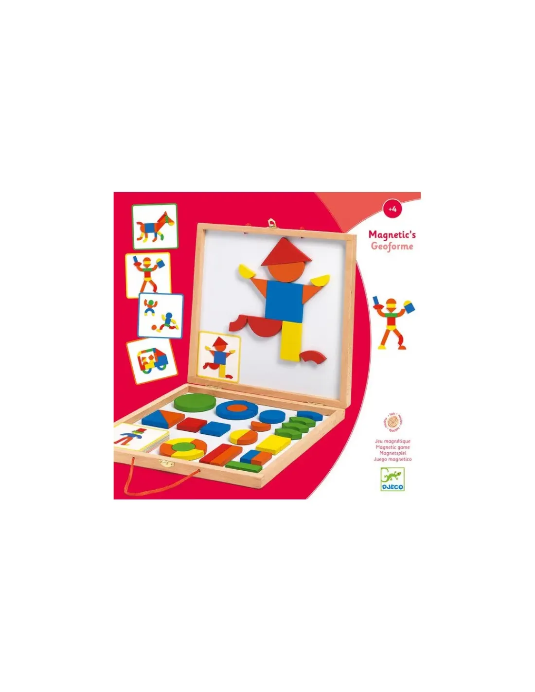 Découvrez le Magnetic’s Géoforme de Djeco, une jolie valisette en bois contenant des pièces aimantées permettant de reproduire des formes : des personnages, des animaux, des véhicules, des scènes… Un jeu magnétique pour les enfants dès 4 ans.