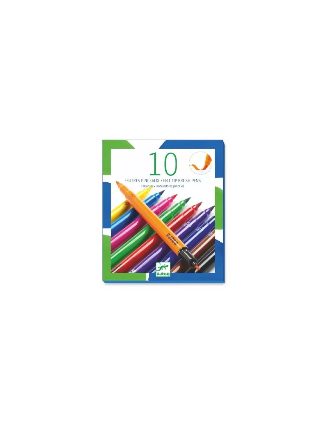 Djeco vous présente ses 10 feutres pinceaux classique avec deux embouts, un feutre fin et un feutre pinceau pour adapté la grosseur du dessin. Des feutres pour les enfants à partir de 6 ans.