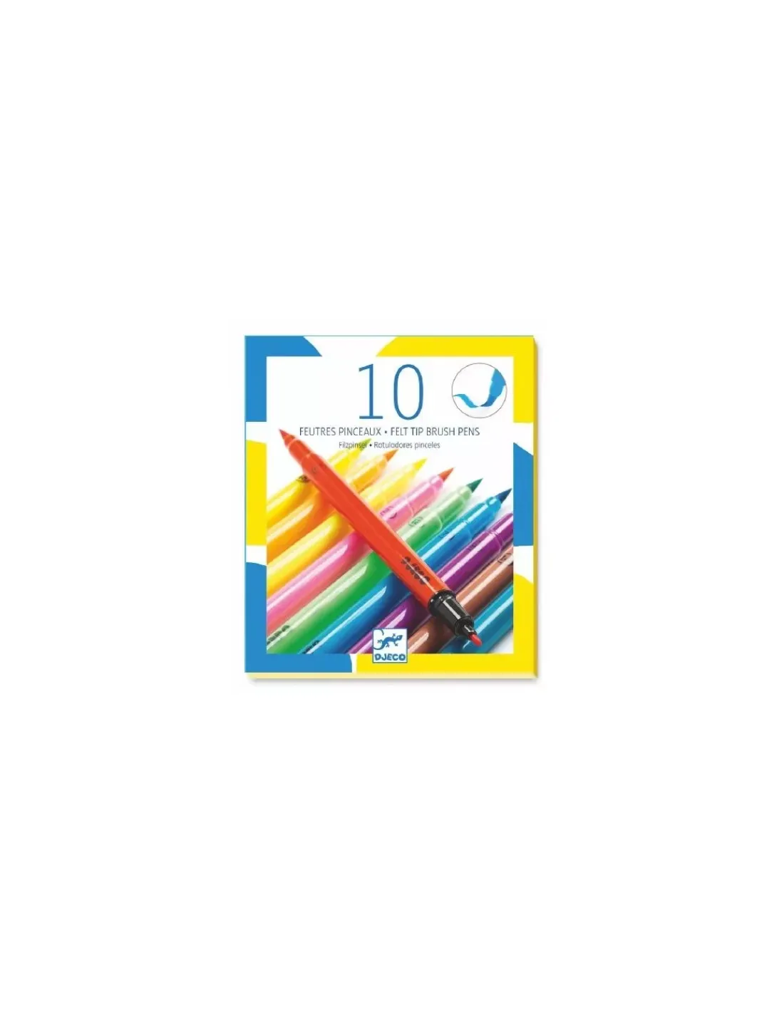 Djeco vous présente ses 10 feutres pinceaux pop avec deux embouts, un feutre fin et un feutre pinceau pour adapté la grosseur du dessin. Des feutres pour les enfants à partir de 6 ans.