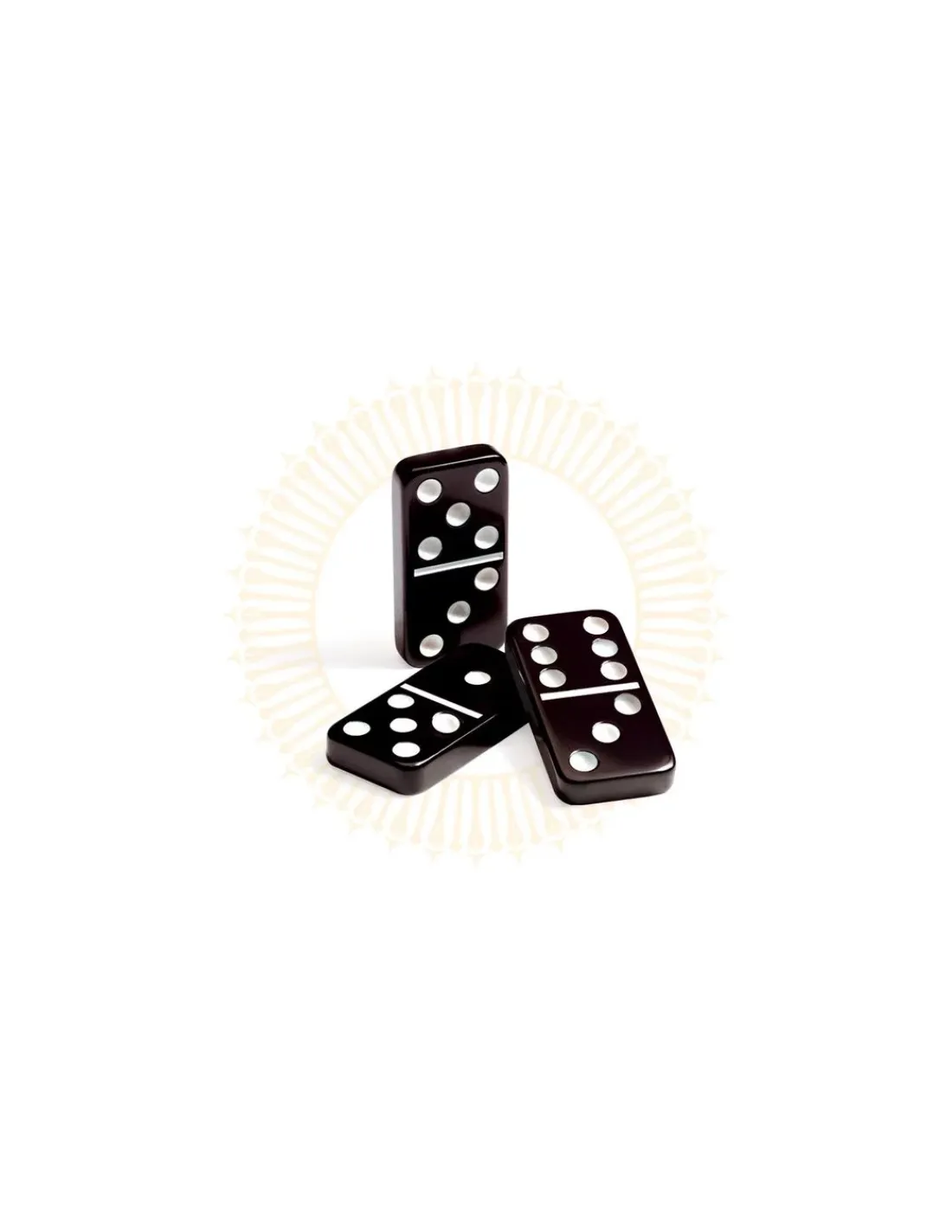 La boite de jeu contient 28 dominos en mélamine et la règle du jeu en 10 langues.