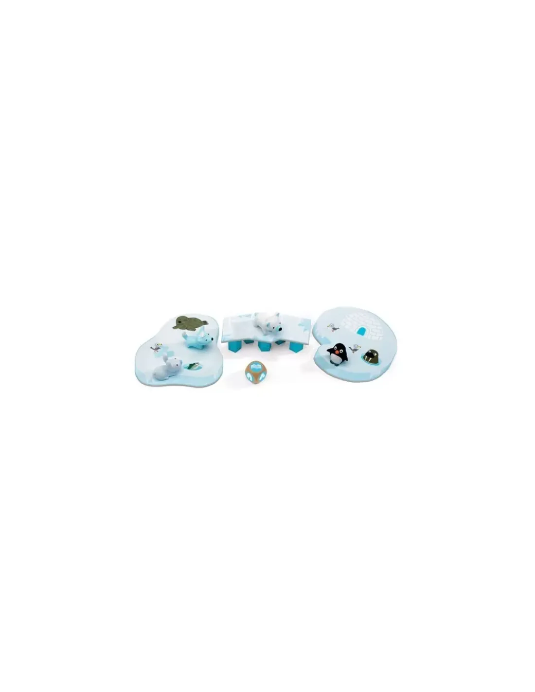 Au début de la partie, les animaux sont placés sur le plateau de départ « banquise ». L’un des joueurs lance le dé et effectue l’action indiquée sur celui-ci. Face pont : on avance l’animal de son choix de la banquise pêche vers le pont. Face igloo : on avance un animal de son choix du pont vers l’igloo. Face glaçons : le pont se met à fondre et on enlève l’un des piliers. Si tous les animaux arrivent à l’igloo avant que le pont ne s’écroule, c’est gagné ! En revanche, si le pont s’écroule avant que tous les animaux soient sur la banquise igloo, tous les joueurs ont perdu la partie.