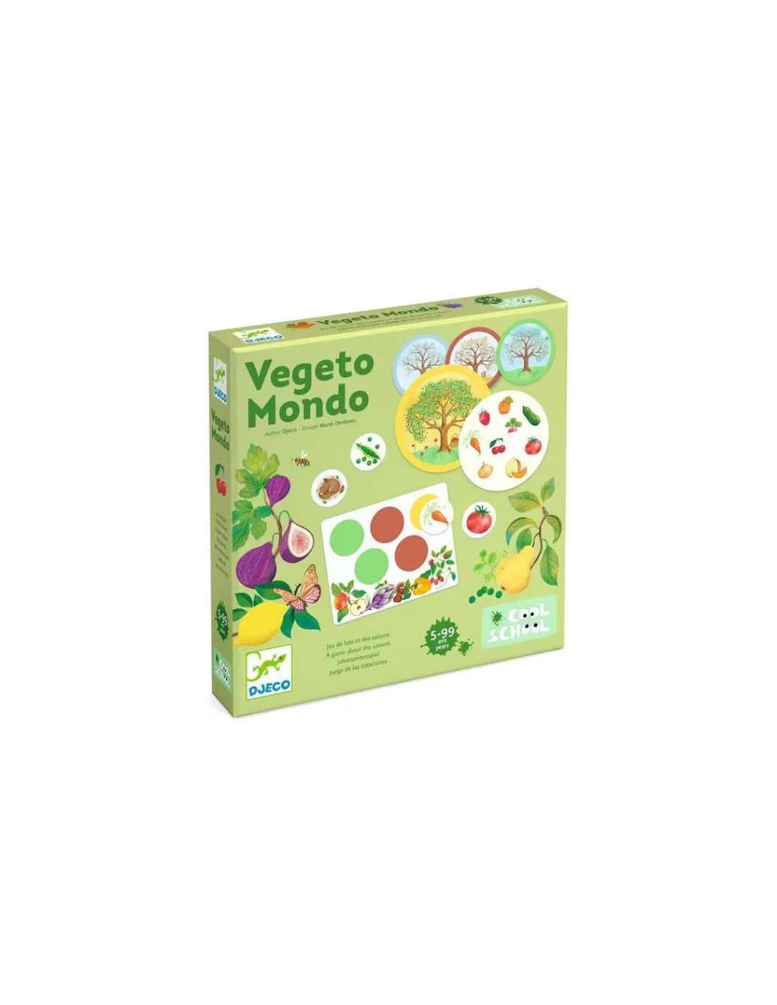 Découvrez le jeu Vegeto Mondo de la collection « Cool School » de Djeco, un jeu de loto sur le thème des quatre saisons pour les enfants dès 5 ans.