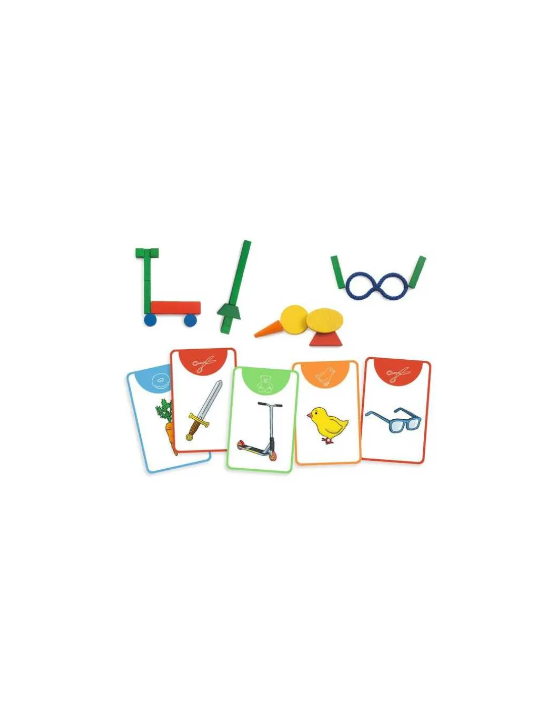 Découvrez KelBazar de Djeco, un jeu de devinettes créatif pour jouer en famille ou entre amis. Un jeu de société dans lequel les joueurs utilisent des formes en bois et une ficelle pour faire deviner leur carte.