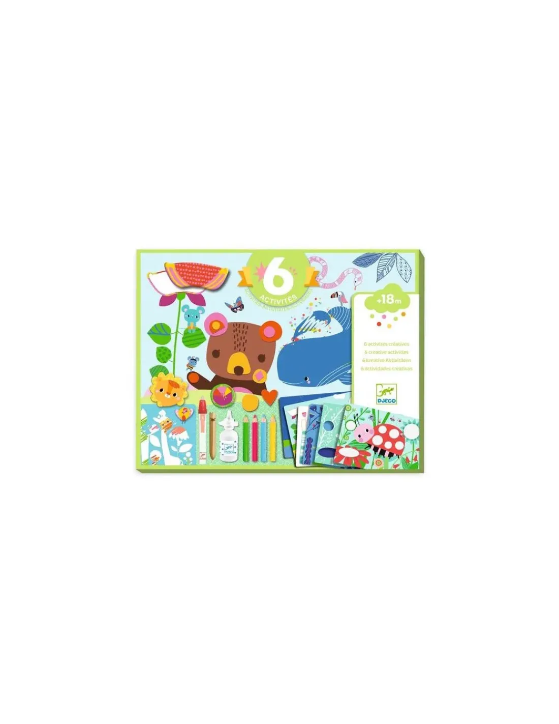 Un coffret très complet proposant 6 activités créatives et de nombreux projets sur le thème des animaux : collage de carton, collage de feutrine, coloriage magique, coloriage à l’eau, carte à gratter, color stop.…