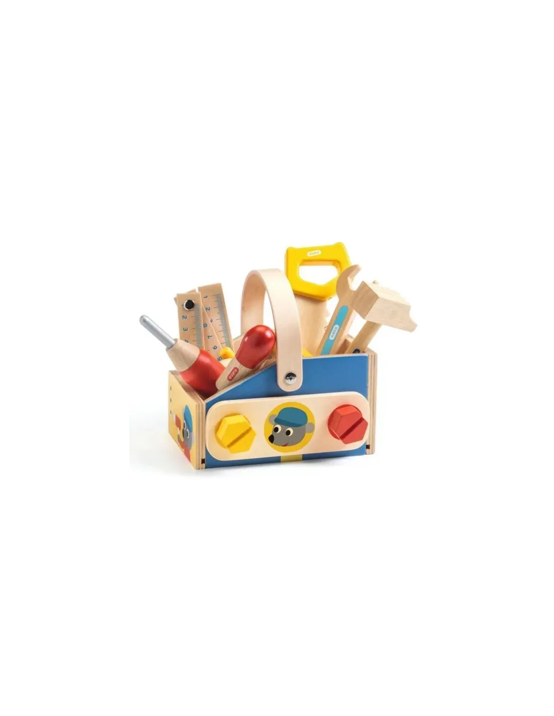 Découvrez le coffret Minibrico de Djeco, une boîte à outils en bois permettant aux enfants dès 18 mois de bricoler comme les grands. Votre enfant va devenir un véritable petit bricoleur avec ce set de bricolage comprenant 6 outils en bois.