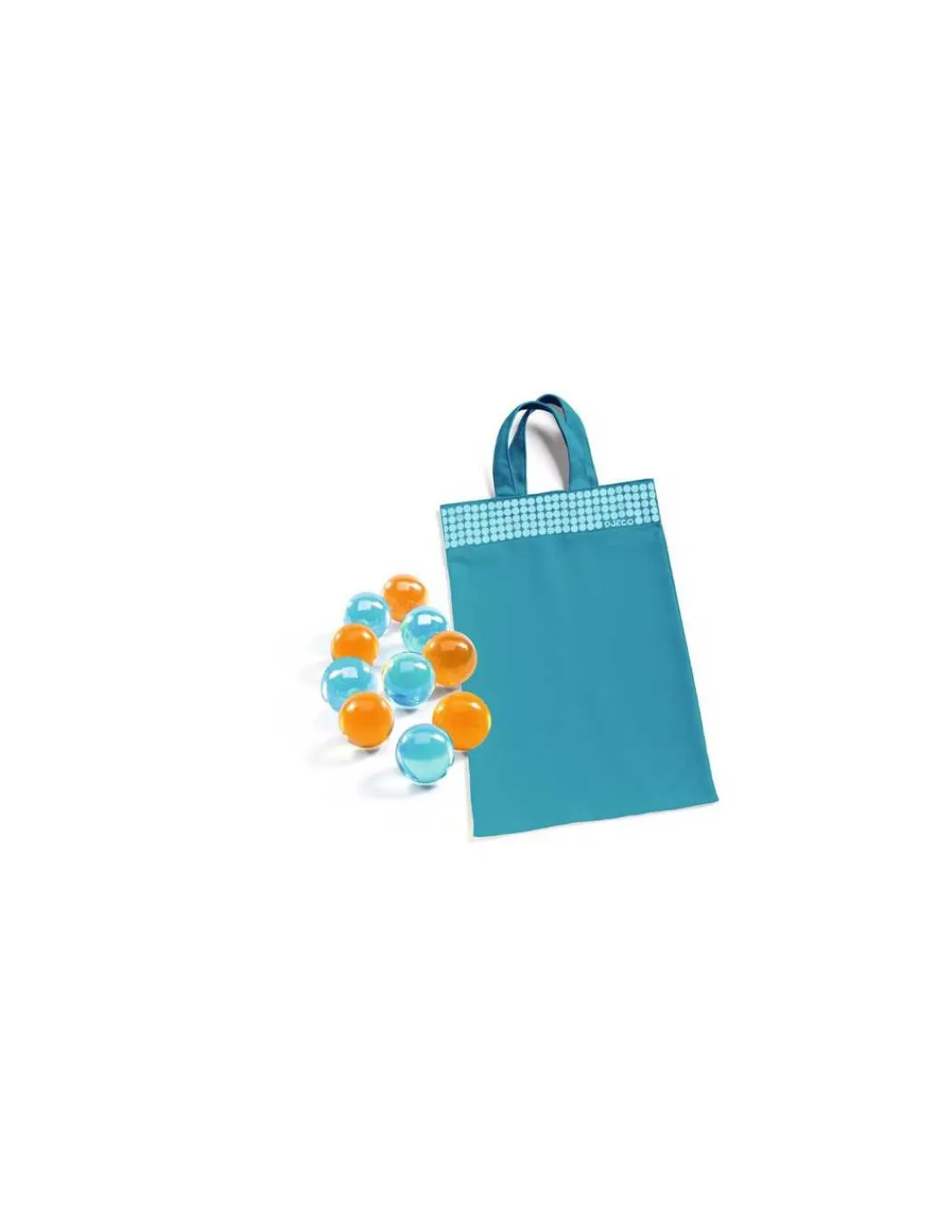 Facilement transportable, votre enfant glissera dans le sac en tissu les 6 obstacles, les 6 mini-drapeaux, les 2 lance-bille et les 10 billes en verre.