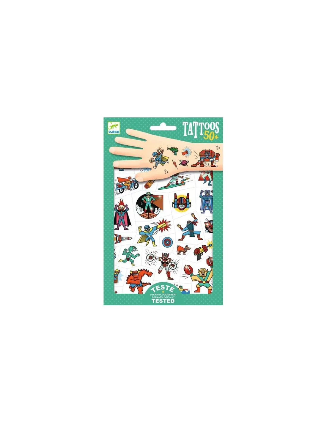 Djeco vous présente ses magnifiques tatouages « Heroes vs villains », de jolis tatoos avec des effets métal. Un accessoire de déguisement indispensable pour une animation réussie et un déguisement abouti à partir de 3 ans.