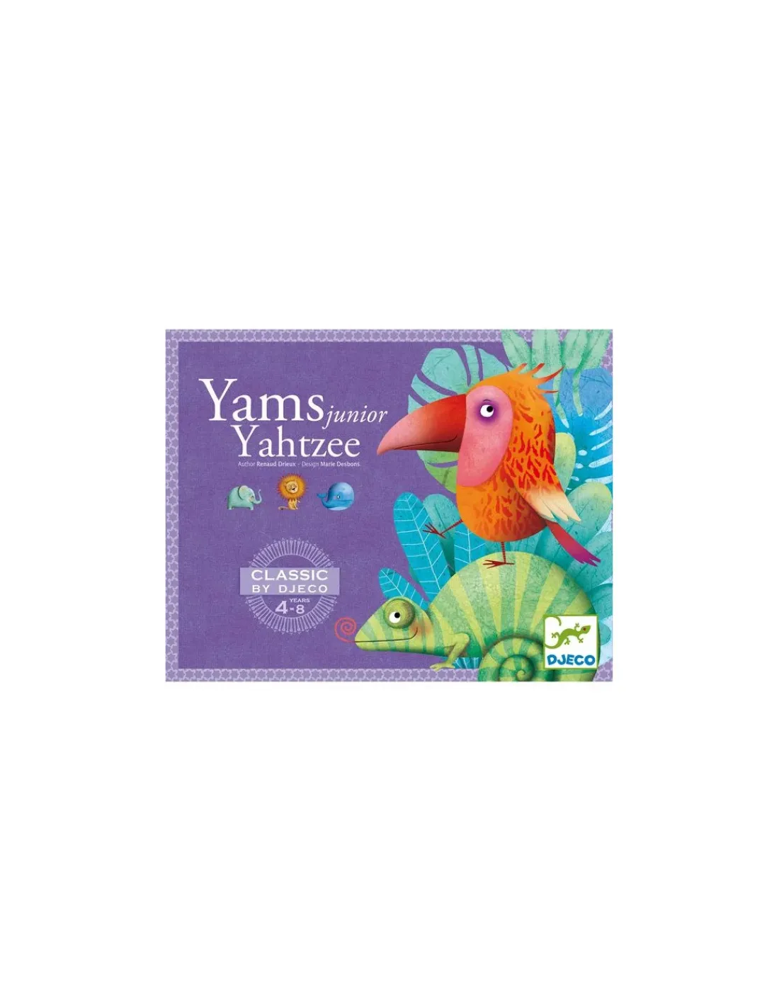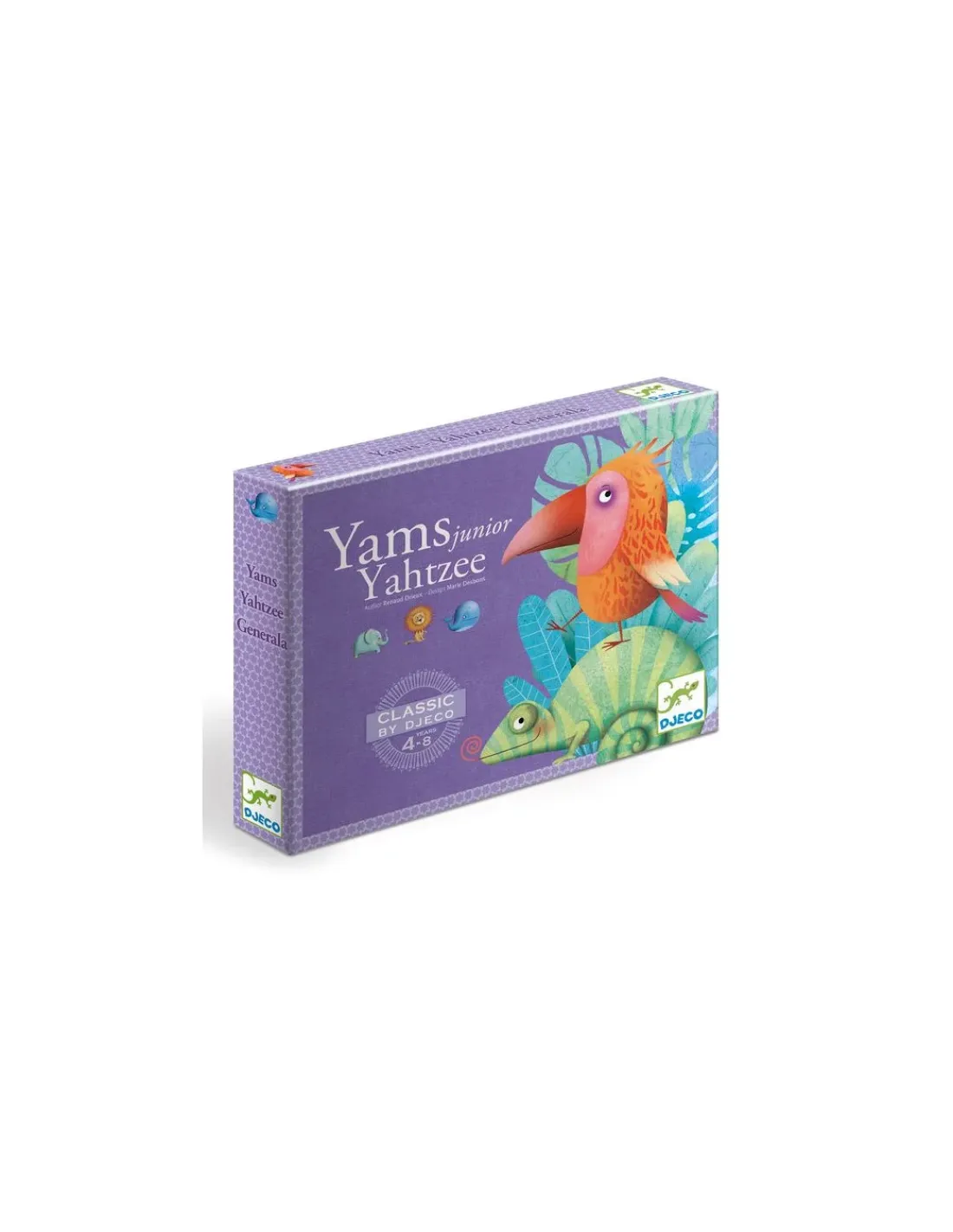 Découvrez Yam’s junior de Djeco, un formidable jeu de dés à partir de 4 ans, où le but du jeu est de remplir une ligne avec 3 jetons ou faire un yam’s (5 dés identiques).
