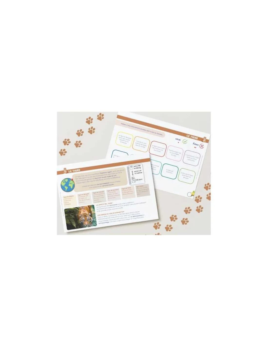 Combinées avec l’Étoilium (non inclus), ces fiches permettent à tous les enfants d’en apprendre plus sur les animaux. Ils découvriront à gauche un texte avec des informations à lire et à droite des questions.