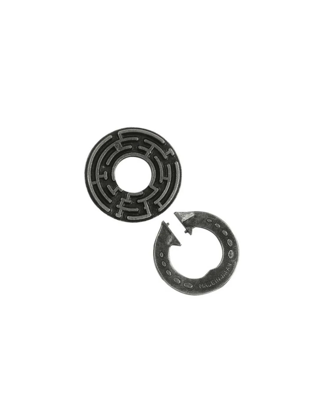 Nob Yoshigaharae, le célèbre designer japonais, fait revivre ce célèbre casse-tête pour offrir une expérience de jeu améliorée, tout en préservant son charme d’antan. Le casse-tête Labyrinthe se présente sous la forme d’un fer à cheval tentant de s’échapper d’une couronne de métal en suivant un chemin complexe et sinueux.