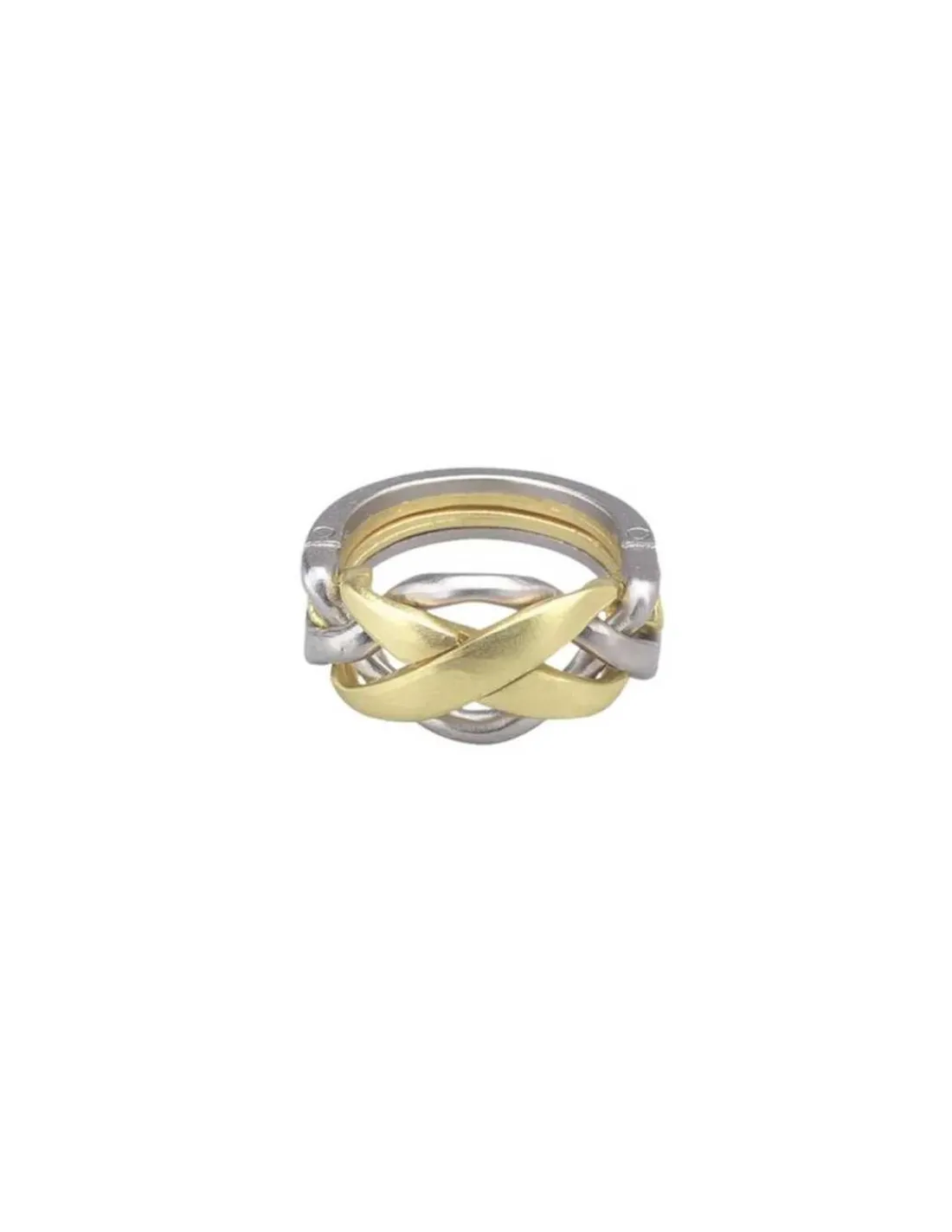 Inspiré du célèbre « Puzzle Ring », cet anneau casse-tête a une histoire riche et captivante. Autrefois, ces anneaux étaient utilisés pour officialiser les fiançailles et pour conclure les mariages, même le réformateur Martin Luther était réputé pour en porter un. On raconte même que la séparation accidentelle des anneaux était considérée comme une preuve d’adultère. À travers ce petit casse-tête, vous pouvez ressentir tout le poids de l’histoire qui l’accompagne.